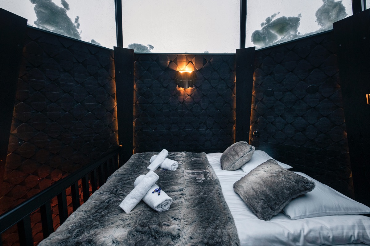 Das Nordlicht-Resort nahe dem Heimatort des Weihnachtsmannes begeistert mit traumhaften Übernachtungsmöglichkeiten, bei denen das Nordlicht die Hauptrolle spielt
