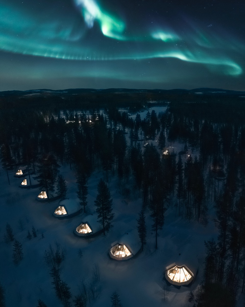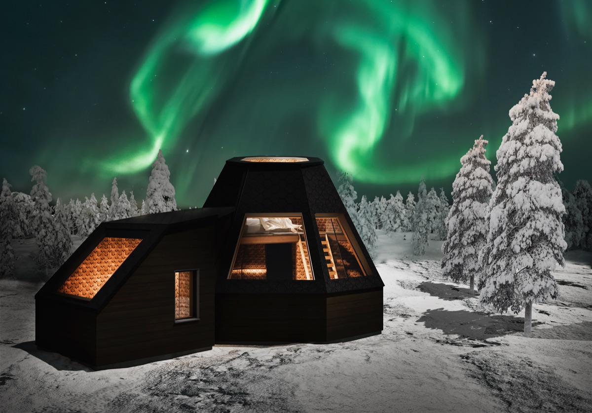 Weit im Norden Lapplands ca. 300 km über dem Polarkreis und inmitten der optimalen Nordlichtzone befinden sich diese traumhaften Glasdachhütten.