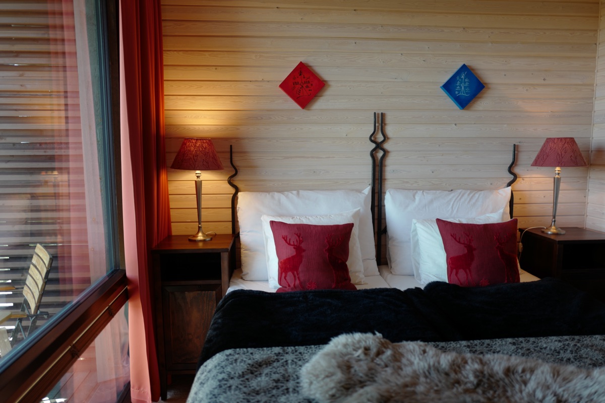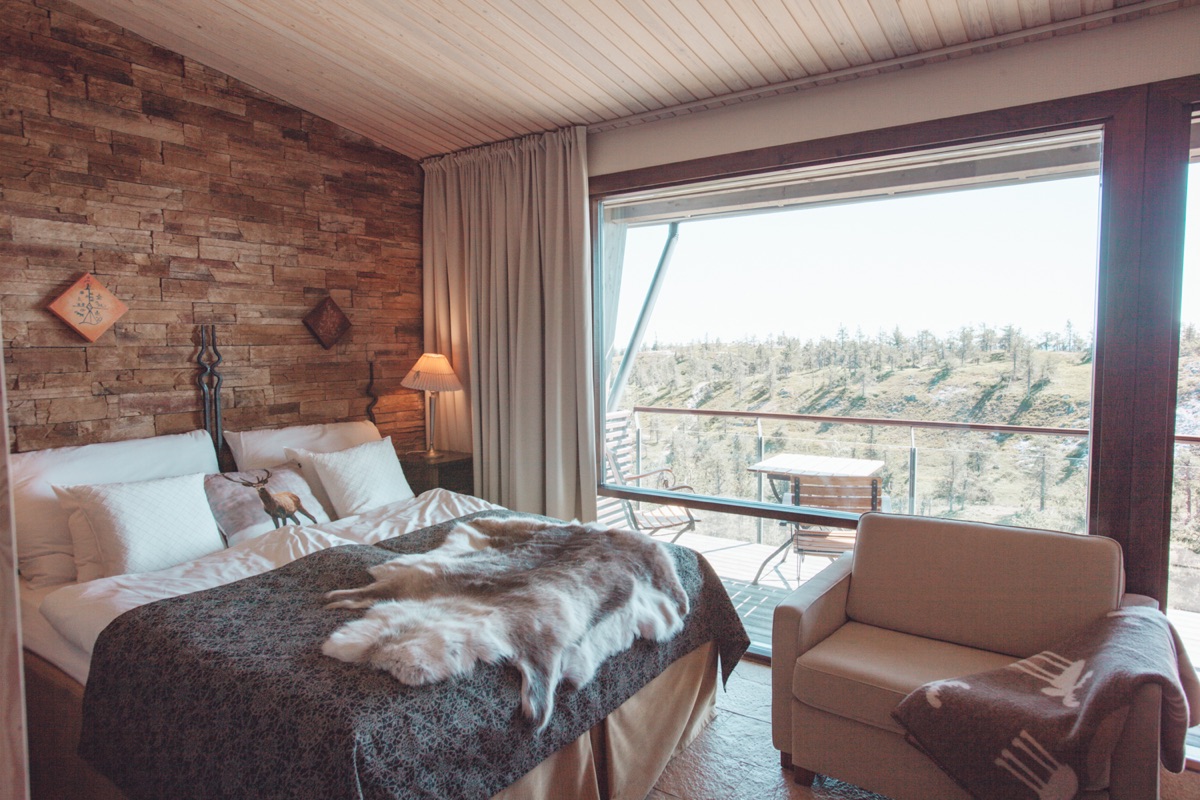 Alle Doppelzimmer sind im modernen skandinavischen Stil, mit natürlichen Materialen eingerichtet. Sie verfügen über Dusche/ WC, Balkon, Haartrockner, Flachbild-TV (ggf. nur finnische Programme), WLAN und Minibar. Die Zimmer haben außerdem große Fensterfronten, so dass Sie Ihre Aussicht vom Berggipfel zu jeder Zeit genießen können.