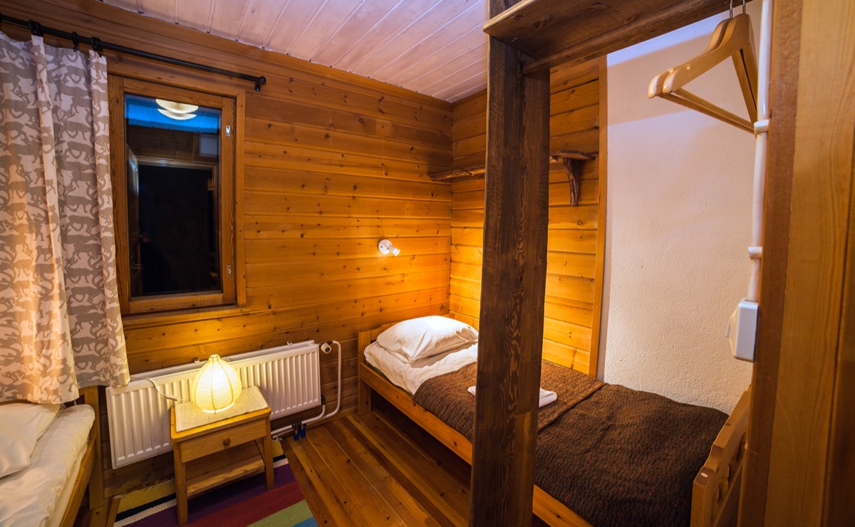 So wohnen Sie: Das kleine Resort bietet geräumige Doppelzimmer in einem Ferienhaus sowie private Blockhütten für 2-4 Personen an. Alle Einheiten verfügen über Dusche, WC und Haartrockner. Die Blockhütten gibt es in einer kleinen Variante mit Wohnraum, Kamin und 1 Schlafzimmer sowie in einer größeren Variante mit Wohnraum, 2 Schlafzimmern, Kamin und privater Sauna. Die Blockhütten verfügen zusätzlich über eine kleine Kitchenette.