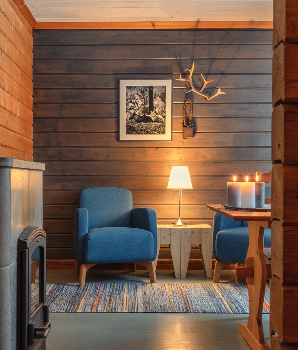 Einrichtungen: Hotelrestaurant mit 40 Sitzplätzen, mit lokalen und biologisch angebauten Speisen. Die Hauptzutaten sind lokales Rentierfleisch, Fisch, Beeren und Pilze. Saunahütte am See für alle Gäste.