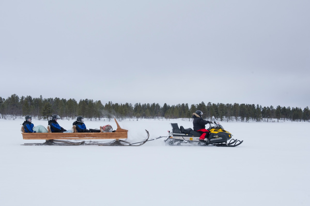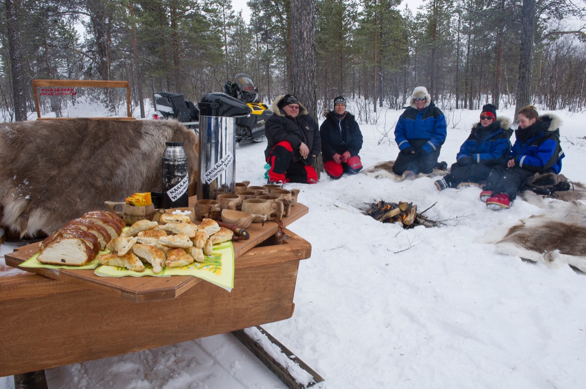 Heute folgen Sie einer Einladung der Sámi-Familie Näkkälä die heute noch im gleichnamigen Dorf wohnt. Dorthin gelangen Sie in warme Decken eingehüllt, im Schlitten sitzend, gezogen von einem Schneemobil.
