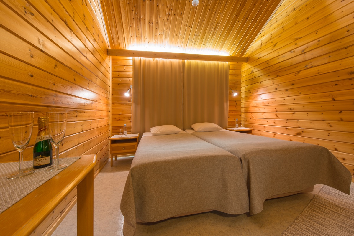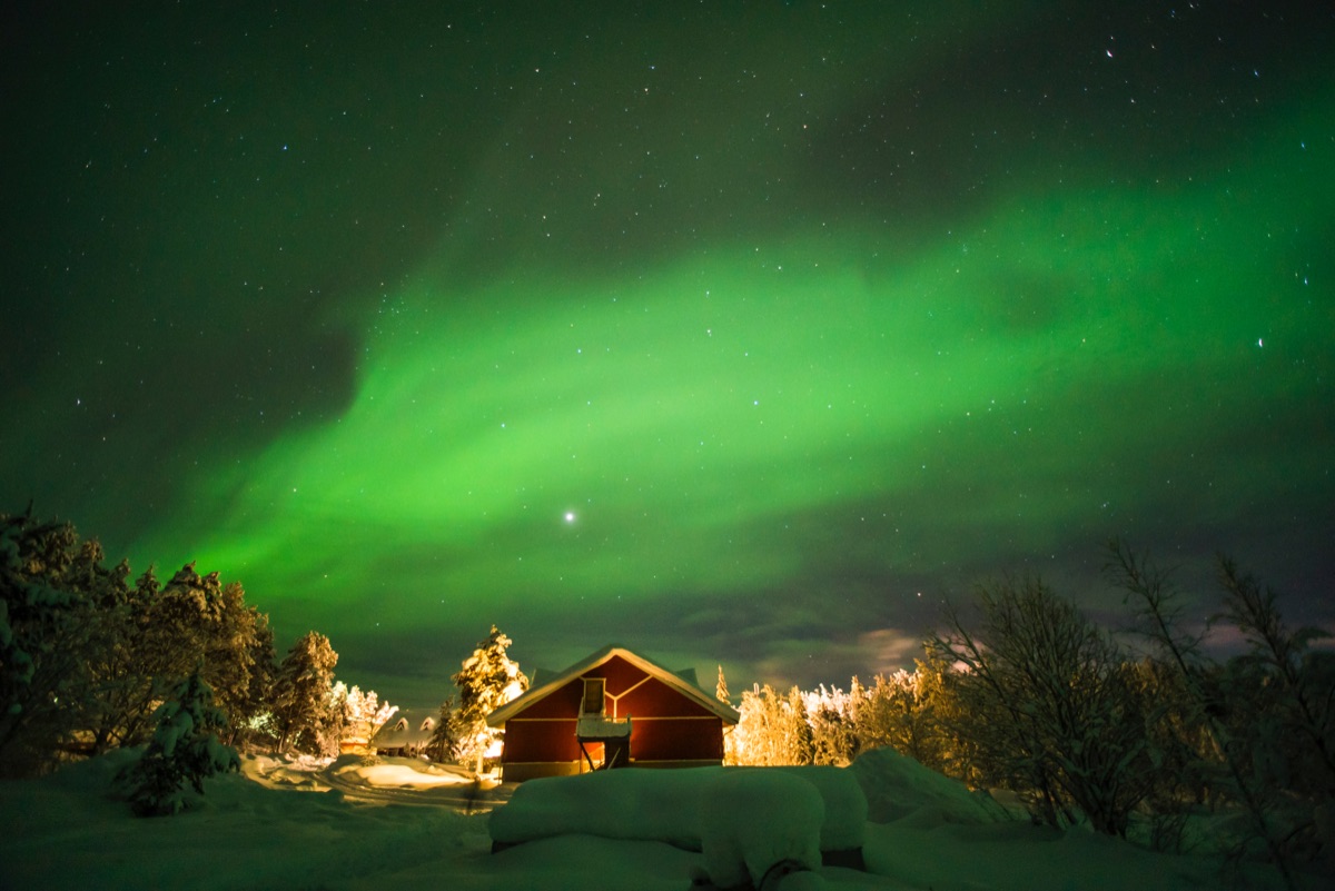 Hier, ganz im Zentrum des Nordlichtgürtels wurden in den vergangenen Jahren bei über 90 % aller Wochenaufenthalte auch Polarlichter gesehen. Gleich hinter dem Hotel gibt es praktisch keine Lichtverschmutzung mehr. Mitten in der Natur und doch ganz nah dran an Einkaufsläden, Apotheke und Arzt - so ein idyllisches Dorf finden Sie auch in finnisch Lappland selten.