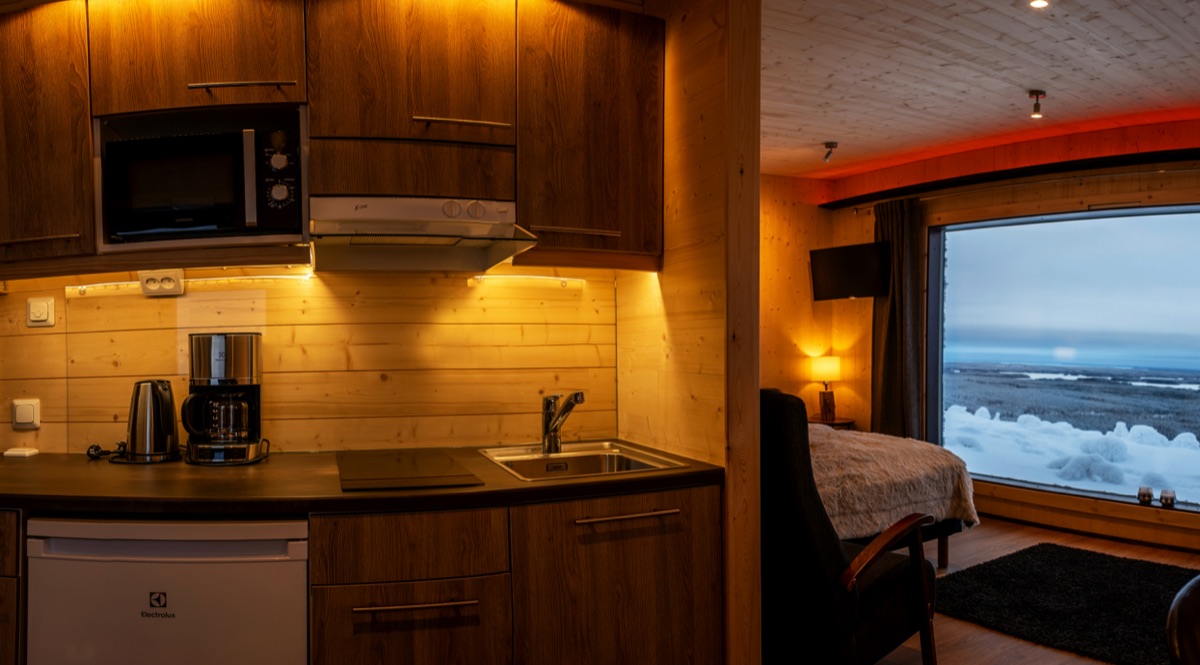 So wohnen Sie: Sie wohnen in den sogenannten Vogelhäusern oder Vogelnestern, die Sie mit einer luxuriösen und geschmackvollen Einrichtung sowie mit einem fantastischem Blick auf die Schneelandschaft begrüßen. Die Häuschen verfügen über eine voll ausgestattete Küche, Badezimmer, Klimaanlage, Flachbildfernseher sowie WLAN und sind individuell eingerichtet.