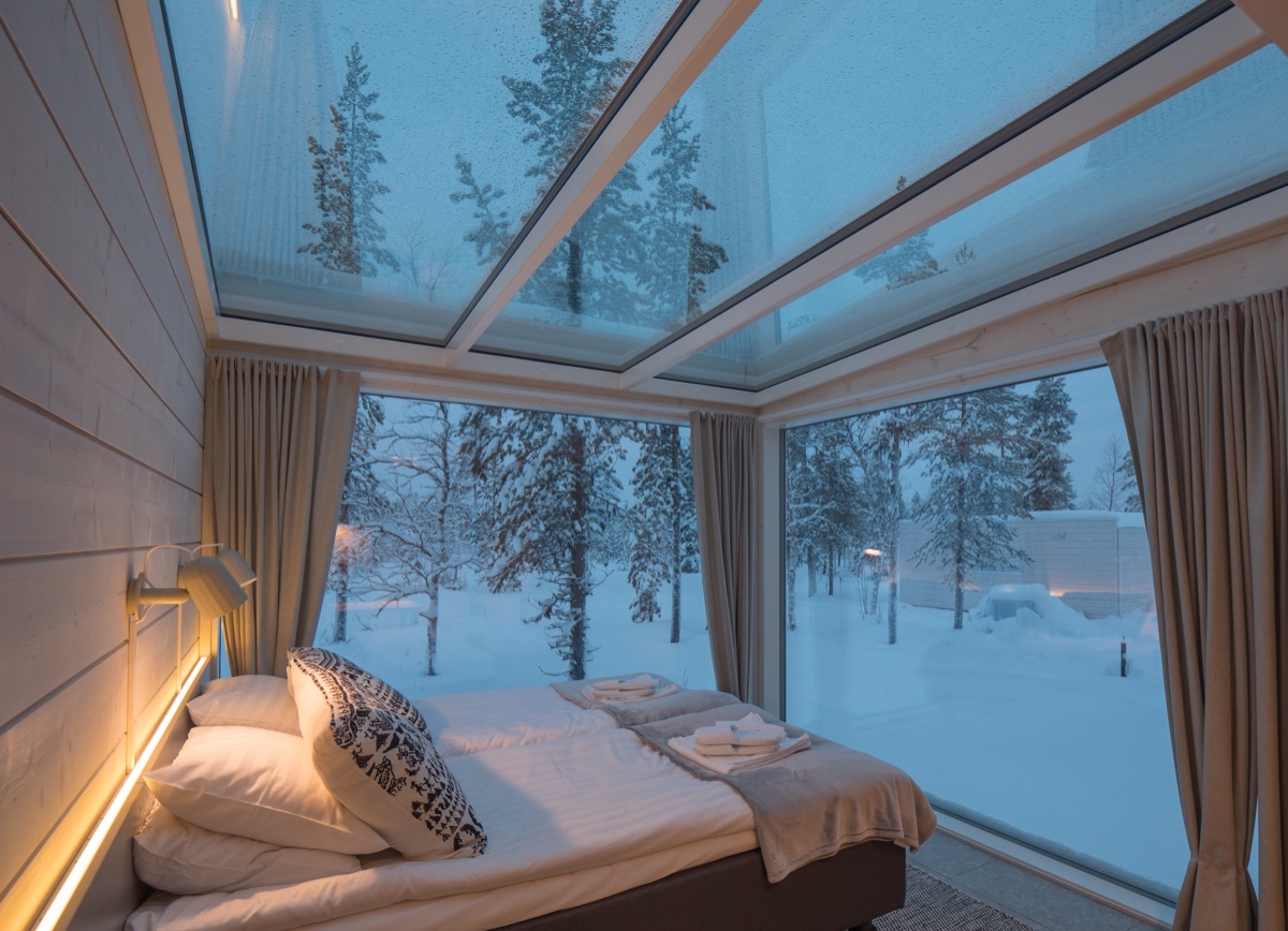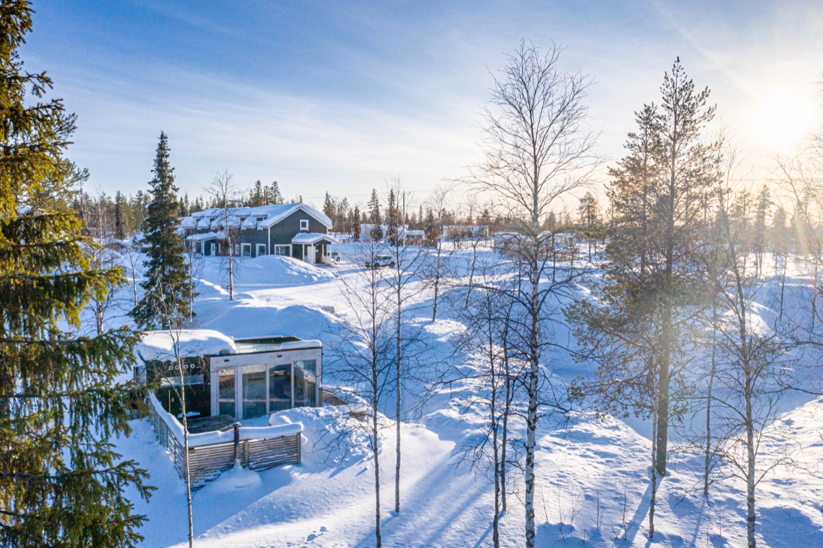 So wohnen Sie: Die Ranch liegt inmitten des Waldes und der einsamen Natur Finnlands. Der nächste Ort, Levi, ist ca. 15 km entfernt. Auf dem Hotelgelände befinden sich aktuell 16 "Sky View Cabins", das sind kleine gemütliche Blockhütten mit einem beheizten Glasdach sowie Panoramafenstern an zwei Seiten. Sechs verschiedene Kategorien werden angeboten. Alle sind im skandinavischen Stil eingerichtet und verfügen über 2 Einzelbetten (zusammenstehend), Kühlschrank, Minibar, Kaffeemaschine, Wasserkocher und Badezimmer. In allen Einheiten gibt es kostenfreies WLAN.