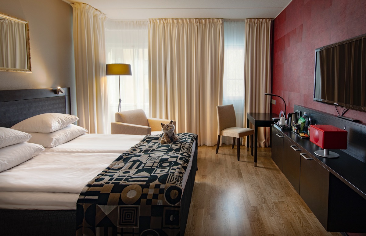 Home Medium: Ca. 18 m² für 2 Personen mit einem Doppelbett (1,60 m) oder zwei Einzelbetten (je 90 cm), Sessel, kleiner Schreibtisch, TV, Wasserkocher mit Kaffee und Tee, Haartrockner, Dusche im Raum. Auch als Dreibettzimmer mit Schlafsofa verfügbar.