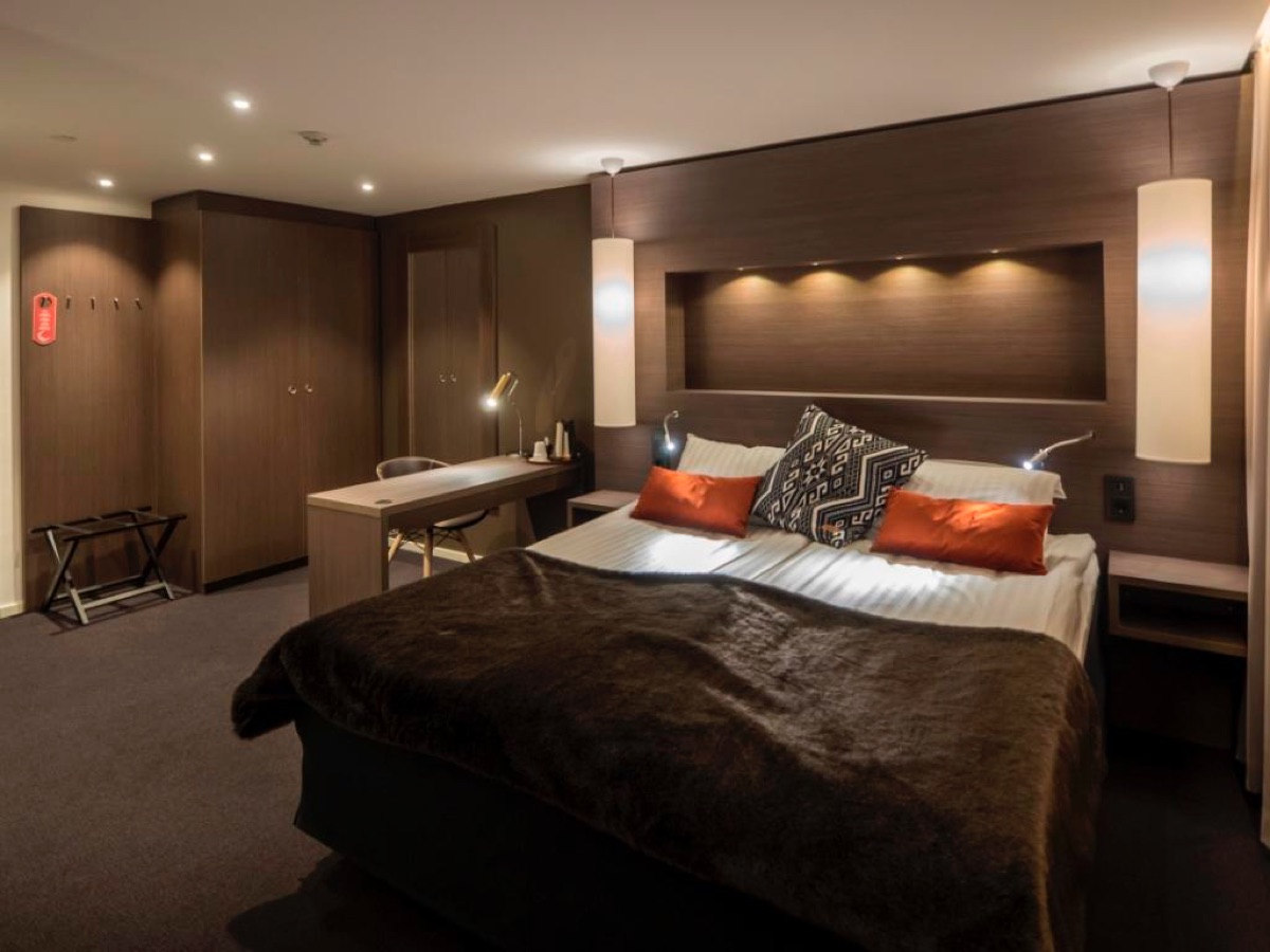 So wohnen Sie: Alle Zimmer sind im nordischen Stil eingerichtet und verfügen über ein Badezimmer mit Dusche/WC, kleine Sitzecke, TV-Gerät (ggf. nur schwedische Programme), Telefon, WLAN, Wasserkocher, Haartrockner. Der Eintritt in den Wellness-Bereich ist inkludiert.