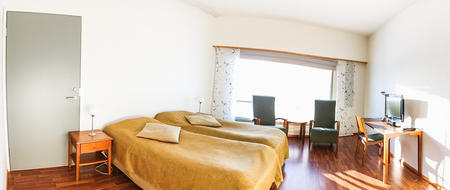 So wohnen Sie: Das Hotel verfügt über insgesamt 82 Zimmer in unterschiedlichen Kategorien. Die Standard-Zimmer befinden sich im neueren Gebäudeteil und sind mit 2 Einzelbetten (Twin-Betten) sowie Dusche + WC und Handtüchern ausgestattet. Weitere Ausstattung: TV, WLAN, Radio und Telefone. Die Superior Zimmer haben entweder eine private Sauna oder eine Whirlpool-Badewanne und es gibt Zimmer mit Verbindungstür. Die Zimmer sind geeignet für 2- 4 Personen (2 Personen im Zustellbett). Wenn nicht anders angegeben, buchen wir diesen Zimmertyp für Sie mit Sauna.