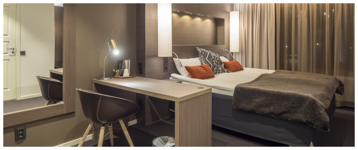 Fliegen Sie mit Flycar direkt ins Herz Schwedisch Lapplands. Am kleinen Flughafen in Arvidsjaur werden Sie abgeholt und nach wenigen Fahrminuten erreichen Sie Ihre Unterkunft für die kommenden Tage: das 3-Sterne-Hotel Laponia, direkt am See in Arvidsjaur gelegen, nur etwa 1 km von der Lappstaden entfernt.