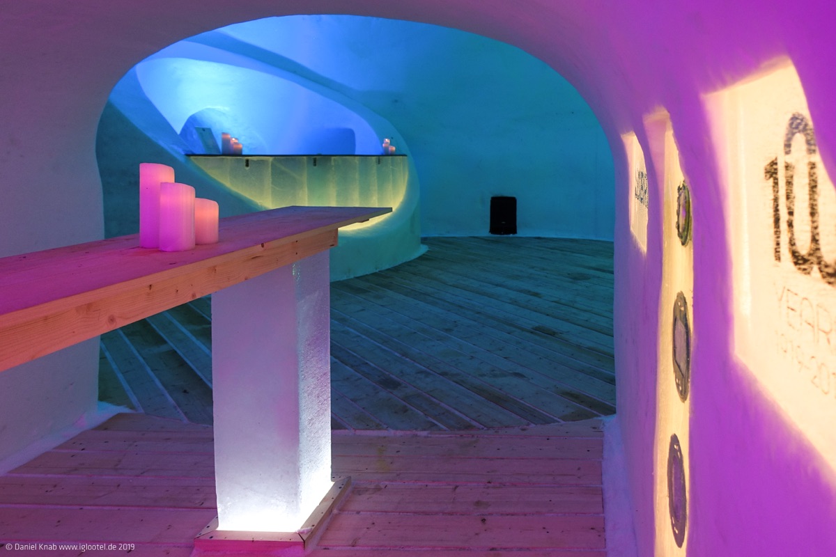 Jeden Winter neu wird das IGLOOTEL - ein Eishotel nur aus Eis und Schnee aufgebaut. Wenn Sie möchten, buchen Sie vorab über uns eine Übernachtung in dieser besonderen Unterkunft. Stimmungsvoll mit moderner Lichttechnik in Szene gesetzt und abgerundet mit hochwertigen Holzböden und lokalen Naturmaterialien erleben Sie hier eine einzigartige Atmosphäre. Vorher entspannen Sie bei einem erholsamen Bad in einem der Whirlpools und genießen die Sauna. Aufgewärmt und tiefenentspannt verbringen Sie schließlich die Nacht im Polarschlafsack im Schlaf-Igloo. (siehe Wunschleistungen)