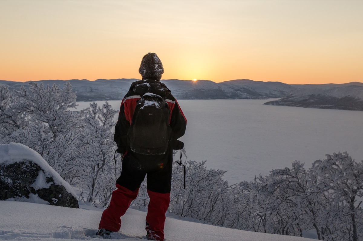 Der heutige Ausflug ist ein Highlight vor allem für fotobegeisterte Urlauber. Er führt Sie von Kilpisjärvi an den Arktischen Ozean. Dieser liegt nur etwa 50 km entfernt. Auf dem Weg zum norwegischen Ort Skibotn fahren Sie mit Ihrem Guide im Minibus von der schneebedeckten Tundra zum immer eisfreien Meeresspiegel am Lyngenfjord, der umgeben ist von den mächtigen Lyngen Alpen mit ihren Gletschern. Am Fjord spüren Sie die Meeresbrise. Für Stein- und Muschelsammler ist das Ufer des Fjords ein wahres Paradies.