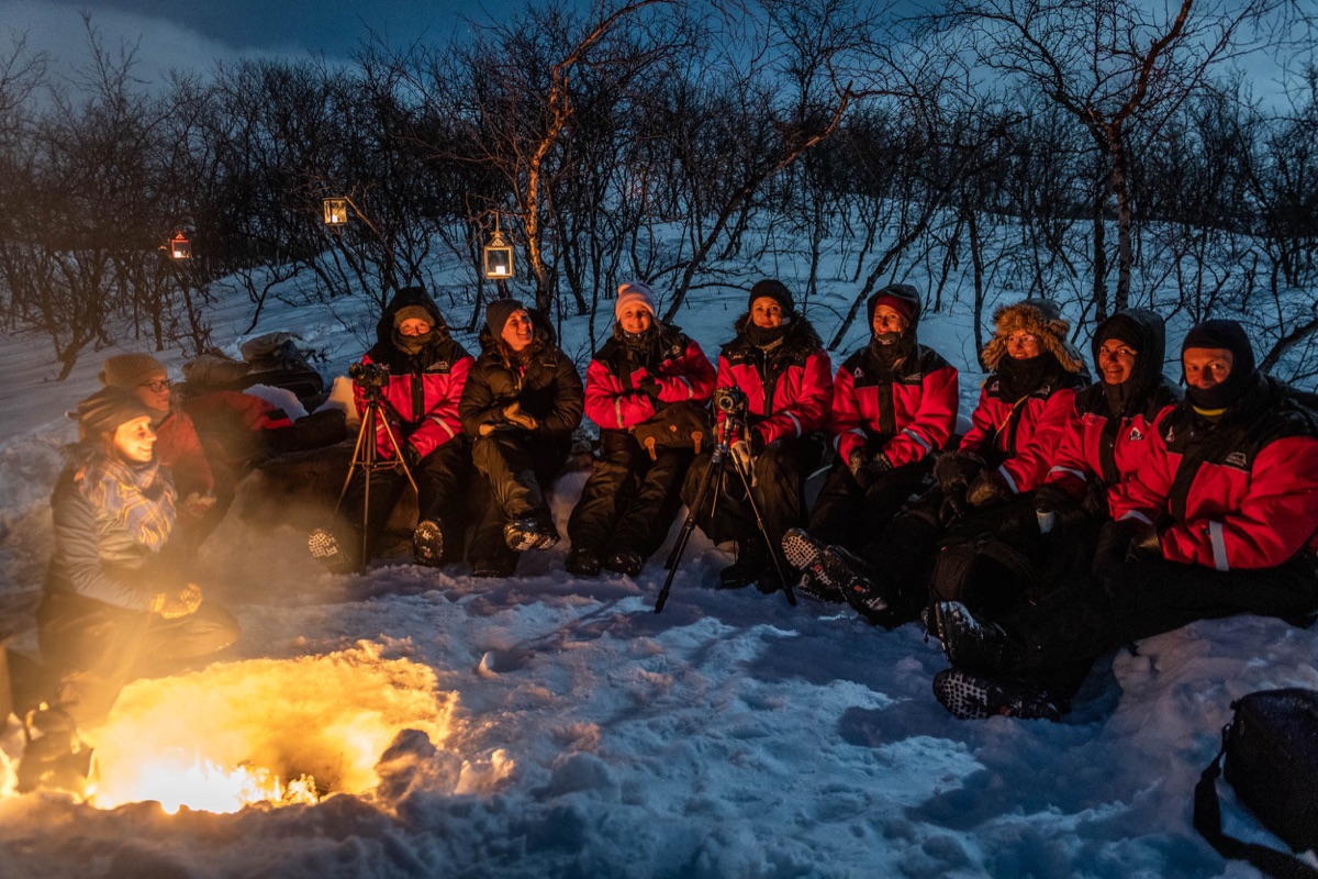 Das Restaurant am Abend entsteht so schnell wie es wieder verschwindet. Mitten in der Stille der Natur entzünden Sie gemeinsam mit Ihren Gastgebern ein Lagerfeuer. Keine Wände und auch kein Dach hindert Sie daran Ihren Blicken freien Lauf zu lassen. Bei klarer Sicht gibt es Millionen von Sternen über Ihnen und vielleicht auch das Nordlicht. Ein professioneller Nordlichtfotograf ist jedenfalls mit dabei um für den Fall der Fälle Fotos von Ihnen und dem Polarlicht machen zu können.