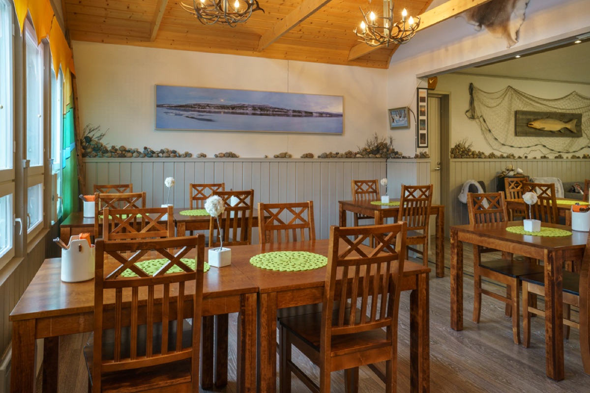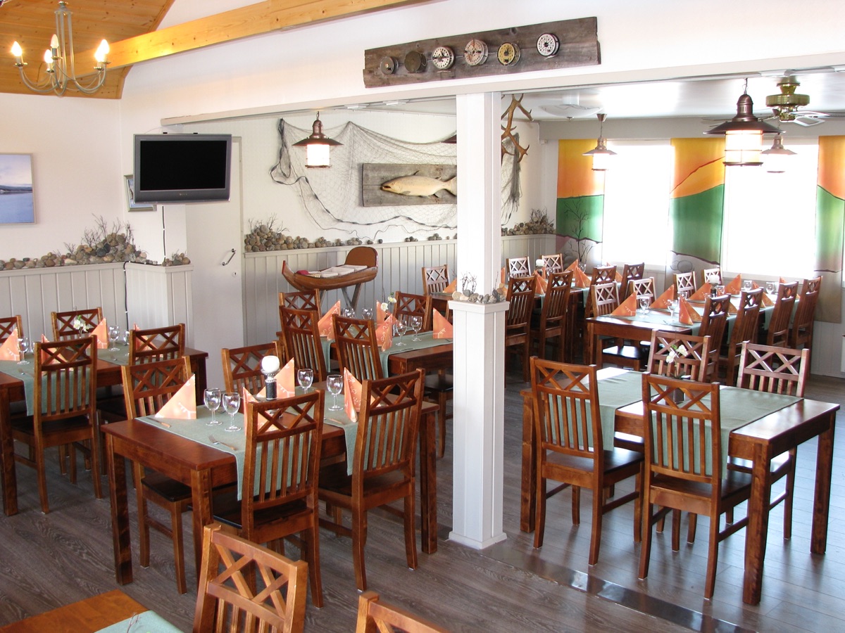 Das gemütliche Restaurant bietet neben ausgezeichnetem Service vor allem regionale Küche mit Lachs aus dem Teno-Fluss, an dem das Feriendorf liegt. Weitere Gerichte bereitet Ihnen Ihre Gastgeberin Marjatta z.B. aus Rentier, Königskrabben und Beeren schmackhaft zu.