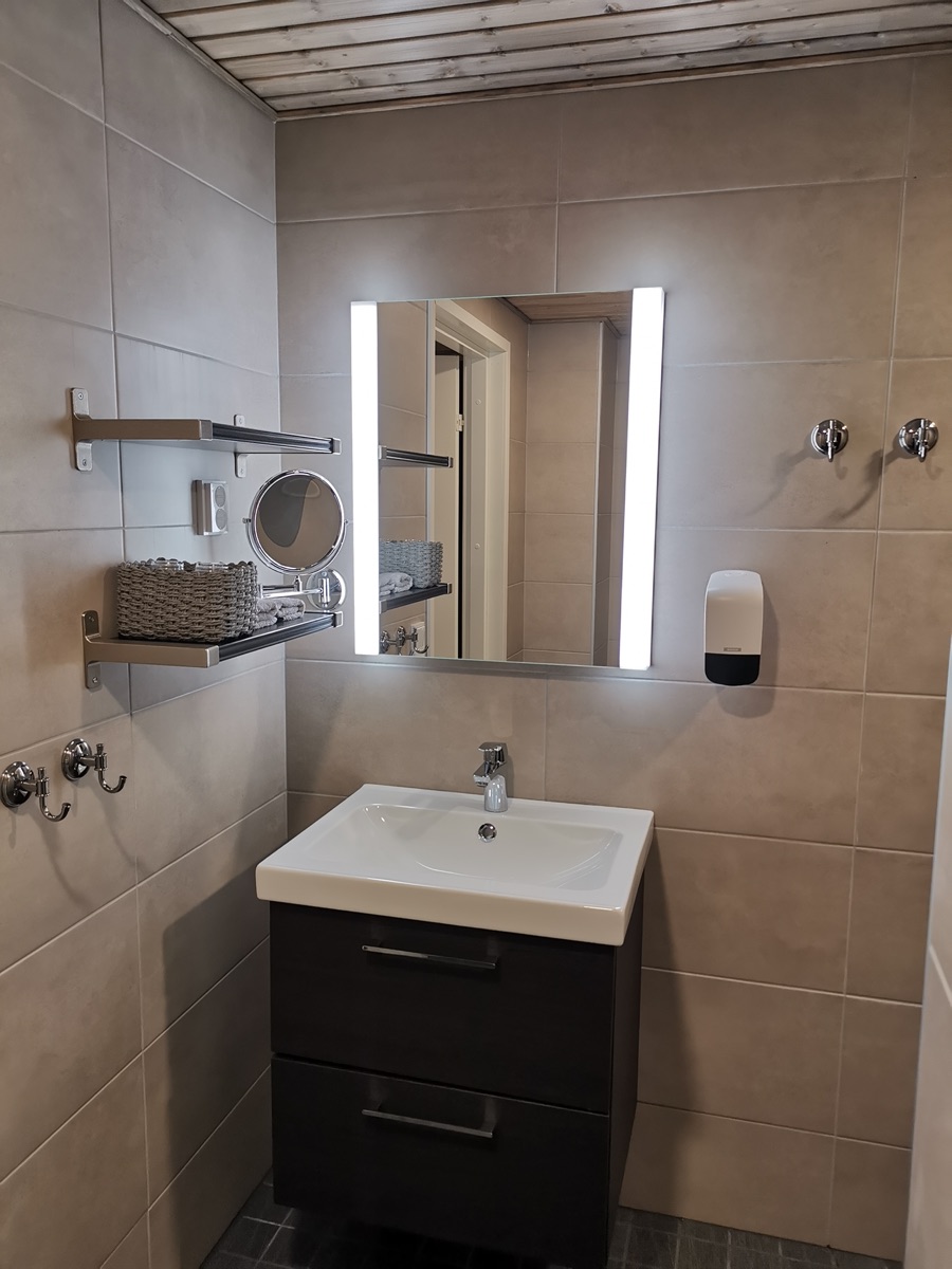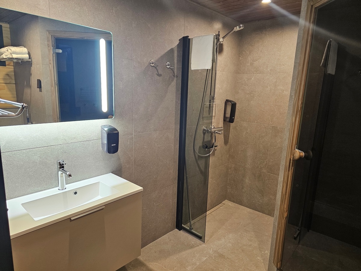 Ganz neu hinzugekommen sind die Deluxe Villas, die ab der kommenden Wintersaison bereitstehen. Inspiriert von der arktischen Natur Lapplands und den Farben aller acht Jahreszeiten, bieten sie große Panoramafenster und eröffnen beeindruckende Ausblicke auf die weite Landschaft und auf das Flussufer. Mit einer Größe von 44 qm und einer eigenen Terrasse finden Sie viel Platz zum Wohlfühlen. Ideal für zwei Personen ausgestattet, können die bequemen Doppelbetten bei Bedarf auch getrennt werden; zusätzlich lässt sich auf dem Sofa ein weiterer Schlafplatz einrichten. Für Komfort sorgen ein modernes Badezimmer mit Dusche, Toilette, Haartrockner und Sauna, ein geräumiger Eingangsbereich mit Schuh- und Trocknungsmöglichkeiten sowie praktische Aufbewahrungsmöglichkeiten in den Schränken. Eine Villa ist zudem barrierefrei gestaltet.