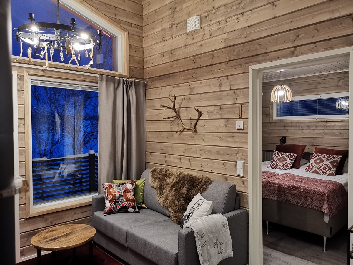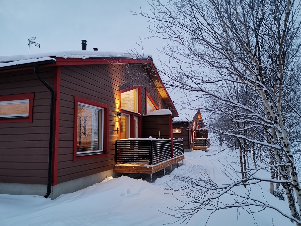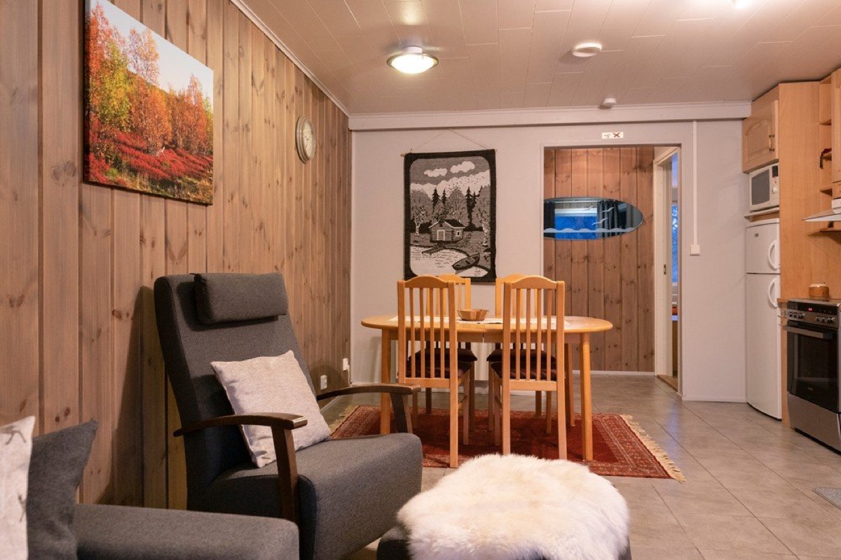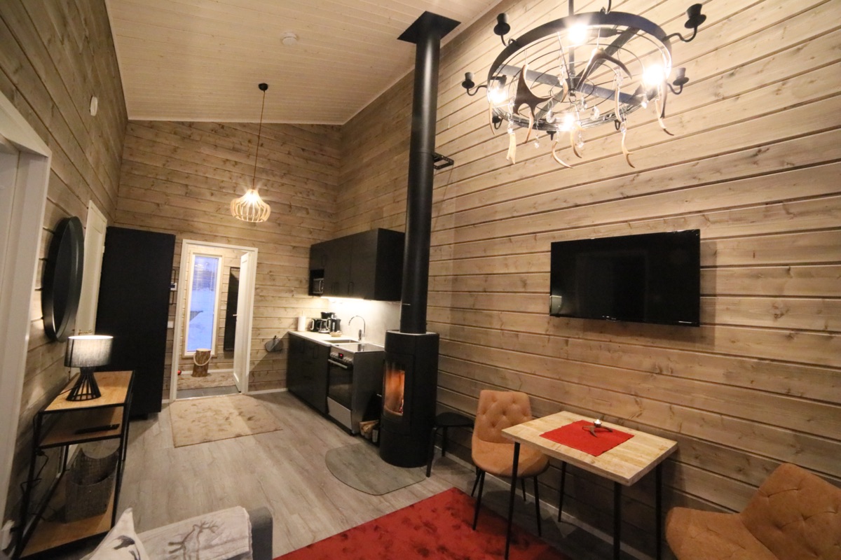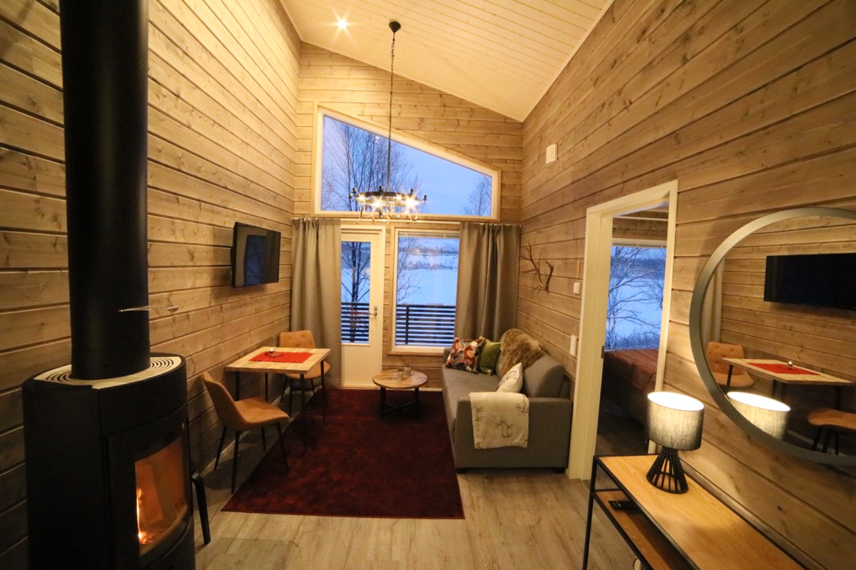 Seit der Wintersaison 2019/20 gibt es vier neue Superior-Ferienhaushälften, die sich direkt am Ufer des Teno-Flusses befinden. 2 Häuser beherbergen insgesamt 4, geschmackvoll und gemütlich eingerichtete, Wohnungen mit einer Größe von jeweils 40 qm. Die große Fensterfront bietet einen guten Blick auf den nächtlichen Himmel und vielleicht sogar auf Nordlichter! Jede Ferienhaushälfte verfügt außerdem über einen eigenen Kamin, eine private Sauna und eine gut ausgestatteten Küchenzeile, die in den Wohnbereich integriert ist und eine Terrasse. Auf einem Schlafsofa im Wohnzimmer ist Platz für 1-2 weitere Personen.