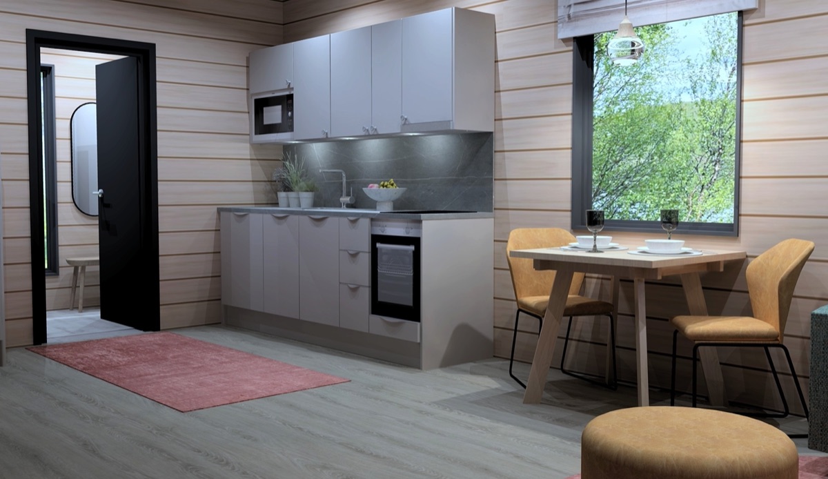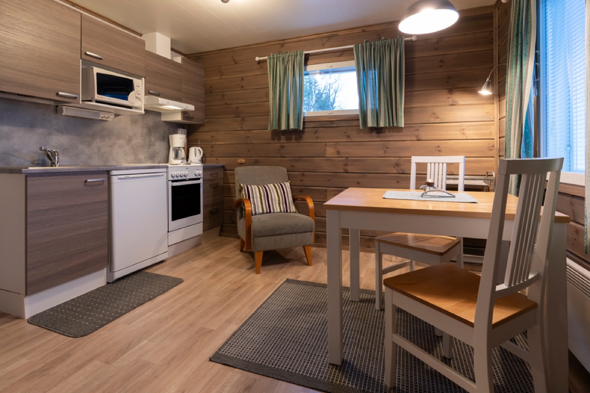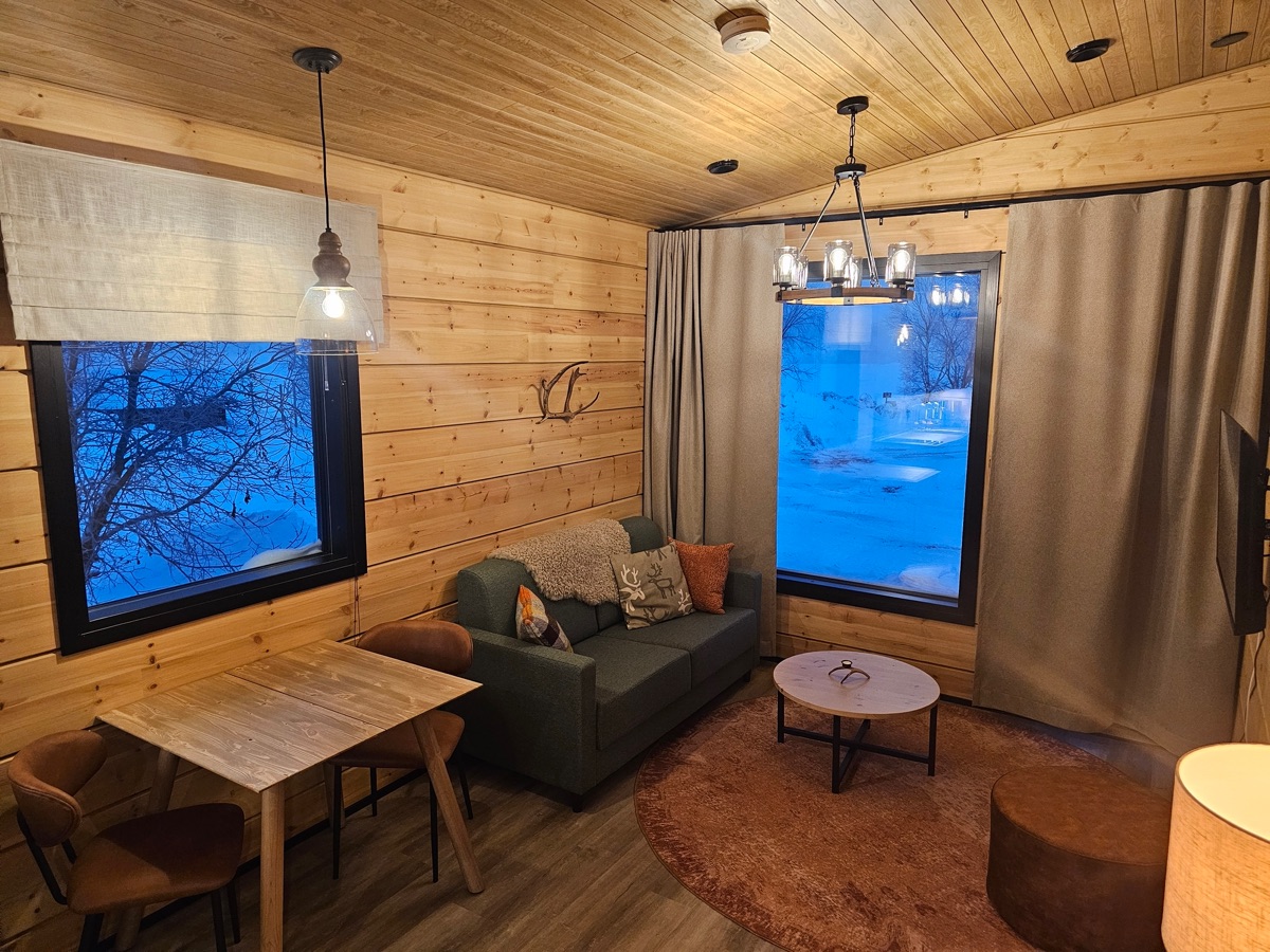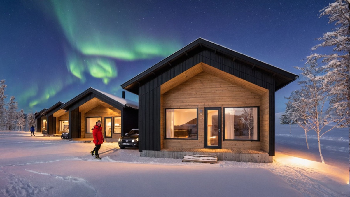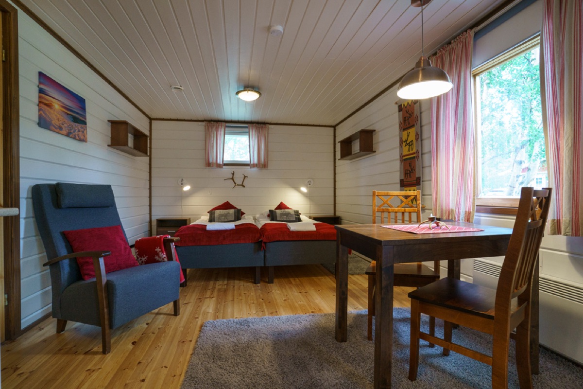 Seit der Wintersaison 2019/20 gibt es vier neue Superior-Ferienhaushälften, die sich direkt am Ufer des Teno-Flusses befinden. 2 Häuser beherbergen insgesamt 4, geschmackvoll und gemütlich eingerichtete, Wohnungen mit einer Größe von jeweils 40 qm. Die große Fensterfront bietet einen guten Blick auf den nächtlichen Himmel und vielleicht sogar auf Nordlichter! Jede Ferienhaushälfte verfügt außerdem über einen eigenen Kamin, eine private Sauna und eine gut ausgestatteten Küchenzeile, die in den Wohnbereich integriert ist und eine Terrasse. Auf einem Schlafsofa im Wohnzimmer ist Platz für 1-2 weitere Personen.