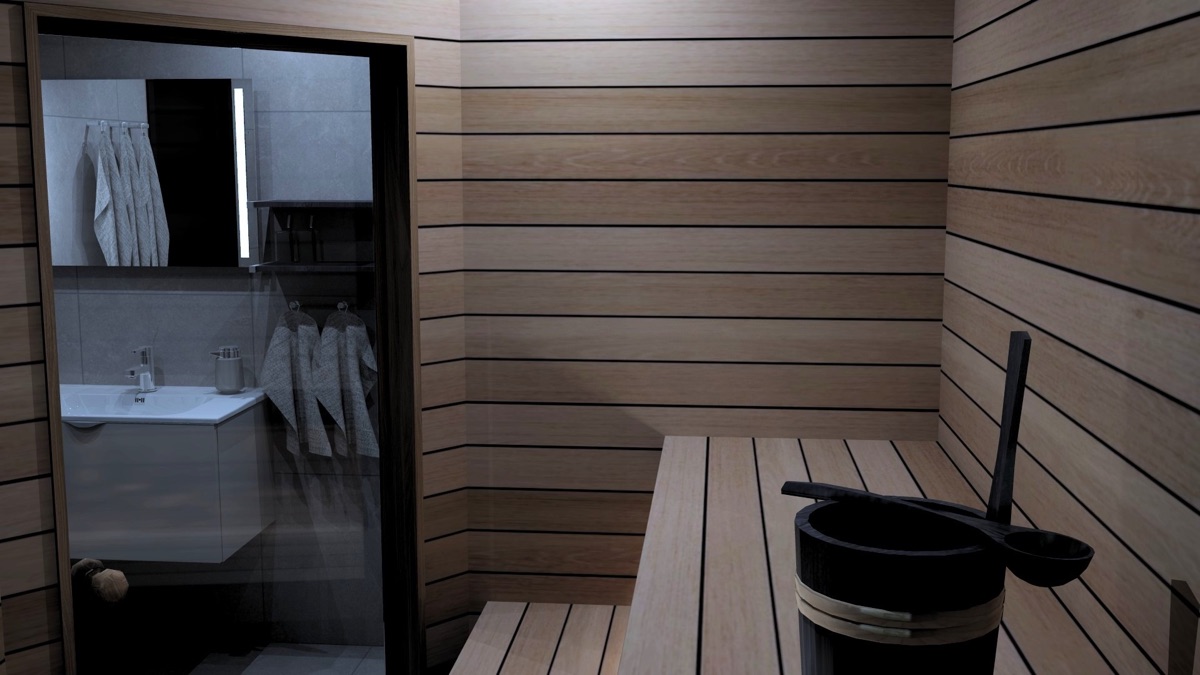 Einrichtungen: Eine große Sauna befindet sich in einem der Nebengebäude und wird gemeinschaftlich genutzt.
