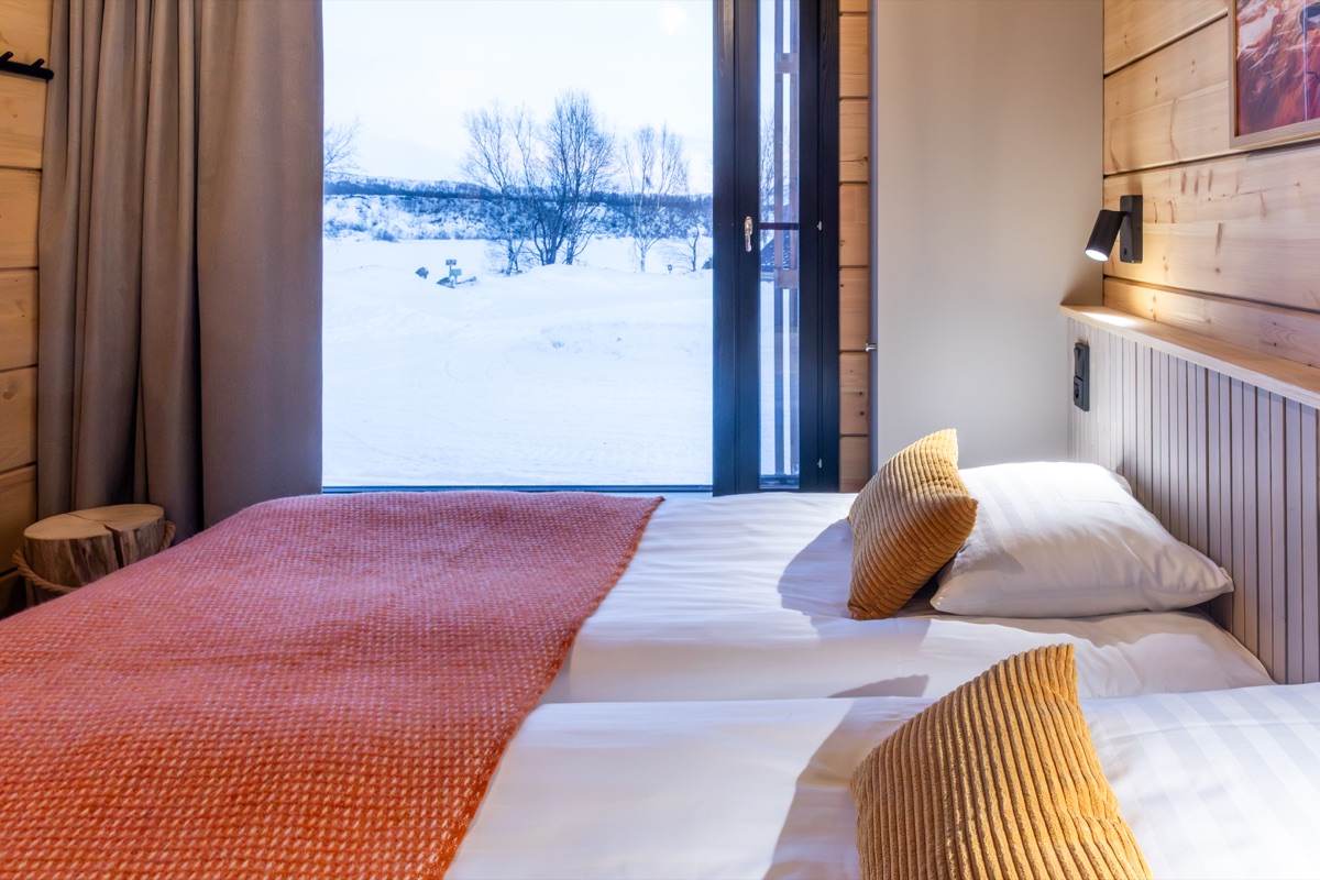 Ganz neu hinzugekommen sind die 5 Deluxe-Villen, die ab der kommenden Wintersaison bereitstehen. Inspiriert von der arktischen Natur Lapplands und den Farben aller acht Jahreszeiten, bieten sie große Panoramafenster und eröffnen beeindruckende Ausblicke auf die weite Landschaft und auf das Flussufer. Mit einer Größe von 44 qm und einer eigenen Terrasse finden Sie viel Platz zum Wohlfühlen. Ideal für zwei Personen ausgestattet, können die bequemen Doppelbetten bei Bedarf auch getrennt werden; zusätzlich lässt sich auf dem Sofa ein weiterer Schlafplatz einrichten. Für Komfort sorgen ein modernes Badezimmer mit Dusche, Toilette, Haartrockner und Sauna, ein geräumiger Eingangsbereich mit Schuh- und Trocknungsmöglichkeiten sowie praktische Aufbewahrungsmöglichkeiten in den Schränken. Eine Villa ist zudem barrierefrei gestaltet.