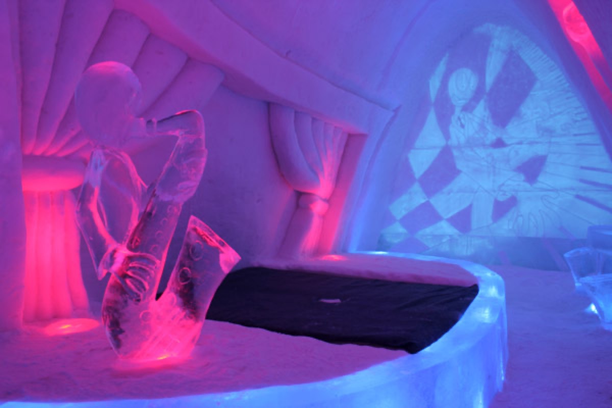 Dort gibt es unglaubliche Eis- und Schneeskulpturen zu bestaunen. Es gibt Zimmer zum Übernachten, welche besichtigt werden können, jedes ist individuell gestaltet mit verschiedenen Themen, Skulpturen, Lichtern und viel Liebe zum Detail.