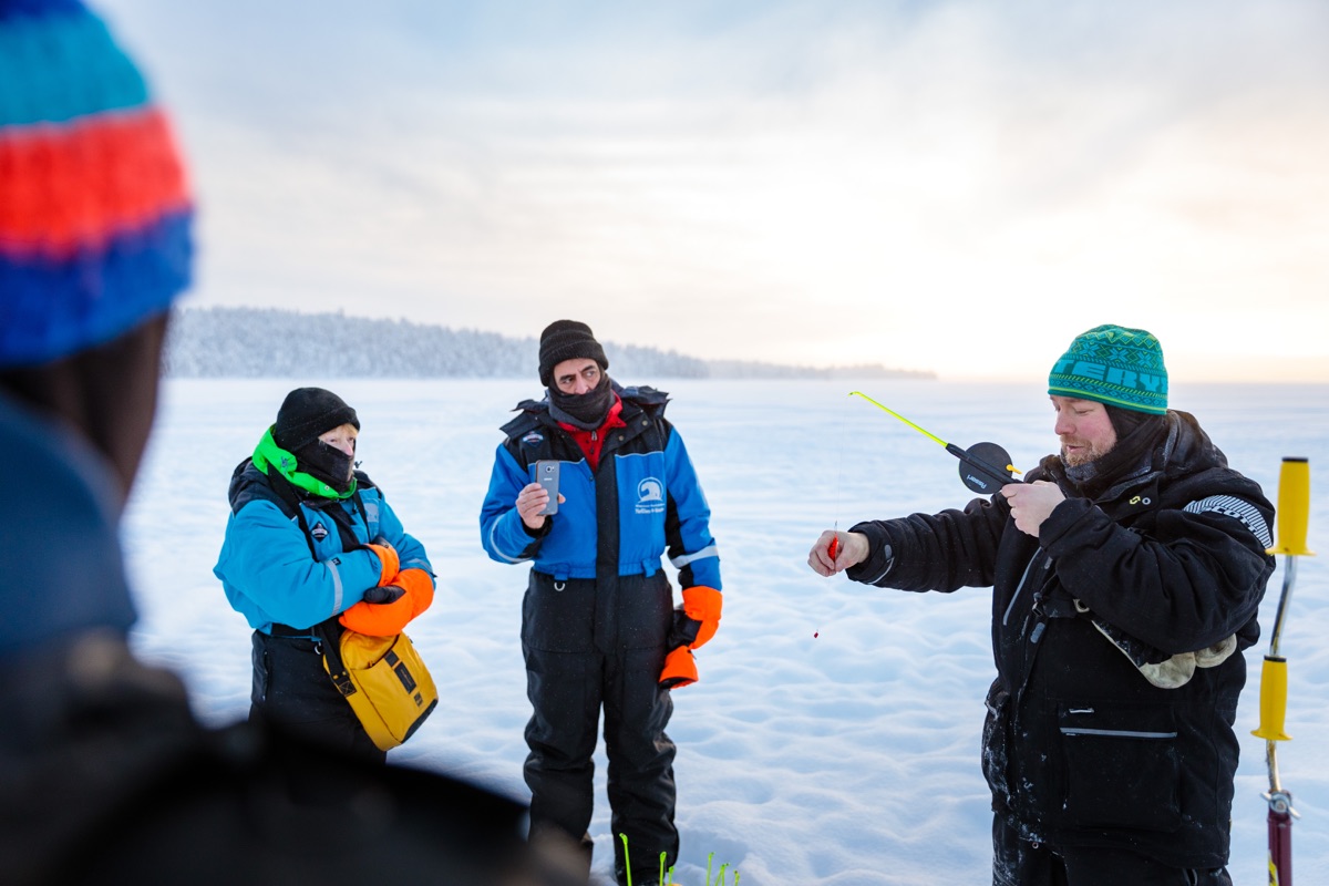 Ihr Schneemobil gleitet durch die weite, glitzernde Schneelandschaft – Ziel ist ein zugefrorener See, wo Sie das traditionelle Eisangeln ausprobieren. Nach einer kurzen Einweisung starten Sie zu Ihrer etwa fünfstündigen Tour, bei der Sie unter Anleitung Ihres Guides die besten Angelplätze entdecken und die Kunst des Eisangelns erlernen.