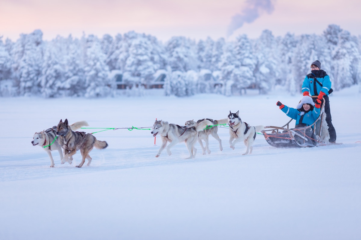 Schon in der Ferne hören Sie das freudige Bellen der Huskys – Ihr Schlittenabenteuer durch Lapplands weiße Weiten beginnt. Nach einer kurzen Einführung in die Kunst des Schlittenfahrens erfahren Sie erst einmal, wie man den Schlitten sicher steuert. Sobald Sie und Ihr Begleiter Platz im Schlitten genommen haben, geht es los.