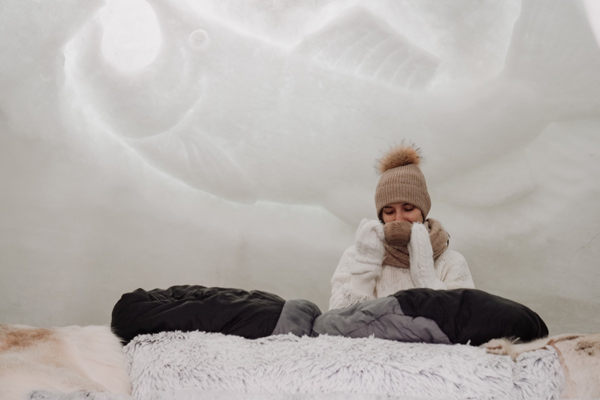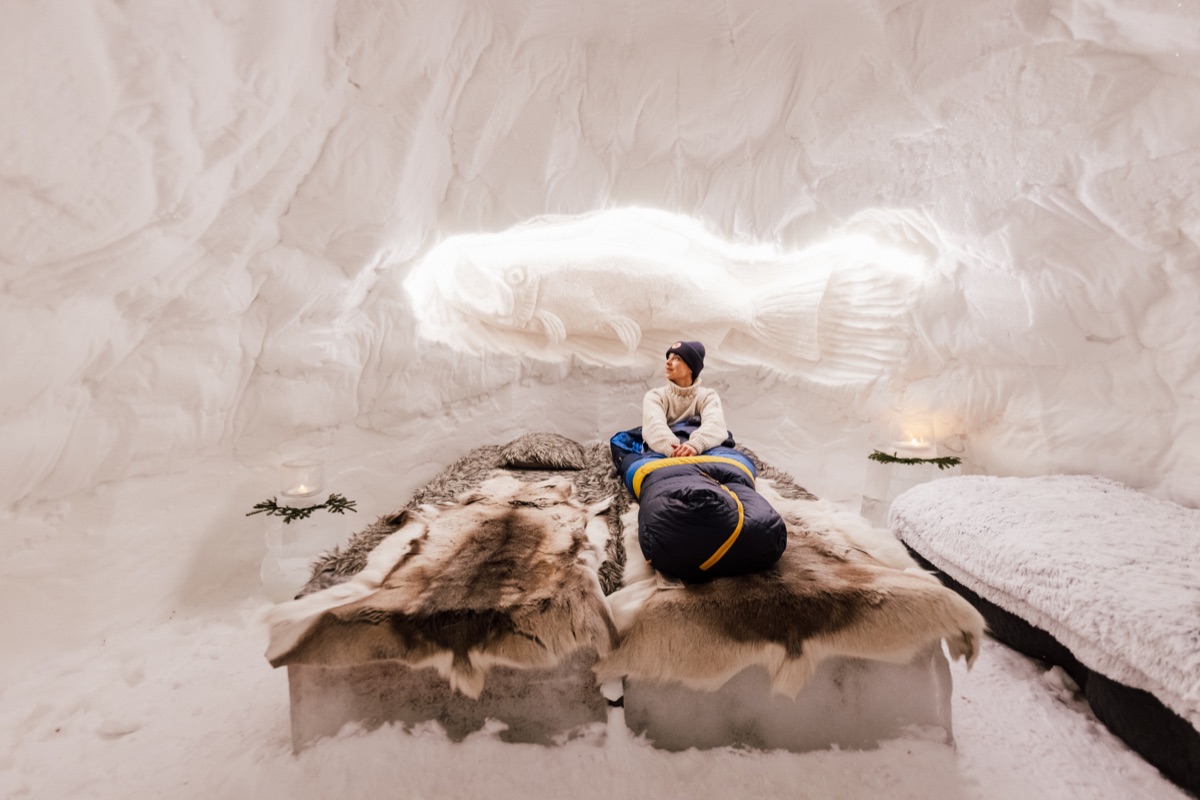 So wohnen Sie: Das Highlight sind natürlich die Schneeiglus. Sie werden jedes Jahr im Dezember neu gebaut, immer ein bisschen anders, immer einzigartig. Innen wartet ein richtiges Bett, warme Schlafsäcke und Wärmflaschen. Die Toiletten und die Dusche befinden sich im Basecamp gleich nebenan, wo es auch Sofas gibt, falls Sie sich aufwärmen oder ausruhen möchten. Im Basecamp können Sie auch Ihr Gepäck aufbewahren und für Wertsachen steht eine abschließbare Box zur Verfügung. Die Iglus werden je nach Gruppengröße vergeben, damit jeder genug Platz hat.