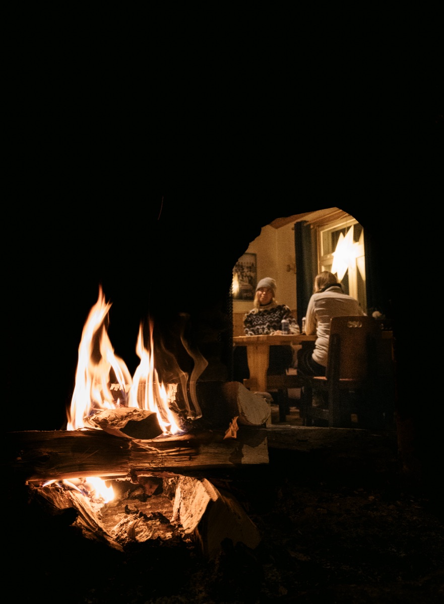 Wer lieber in einer warmen Hütte schläft, findet auf der Ranch verschiedene gemütliche Holzhäuschen – mit Küchenzeile, Wohnbereich, Dusche und zum Teil sogar mit eigener Sauna. Auch ein größeres Apartment für Familien oder Gruppen steht zur Verfügung, ebenso wie ein traditioneller Speicher oder Stellplätze für Camper und Zelte.