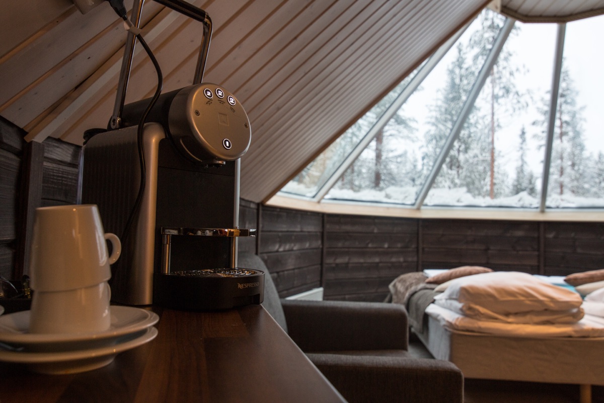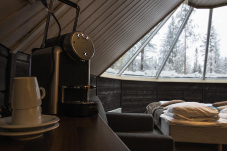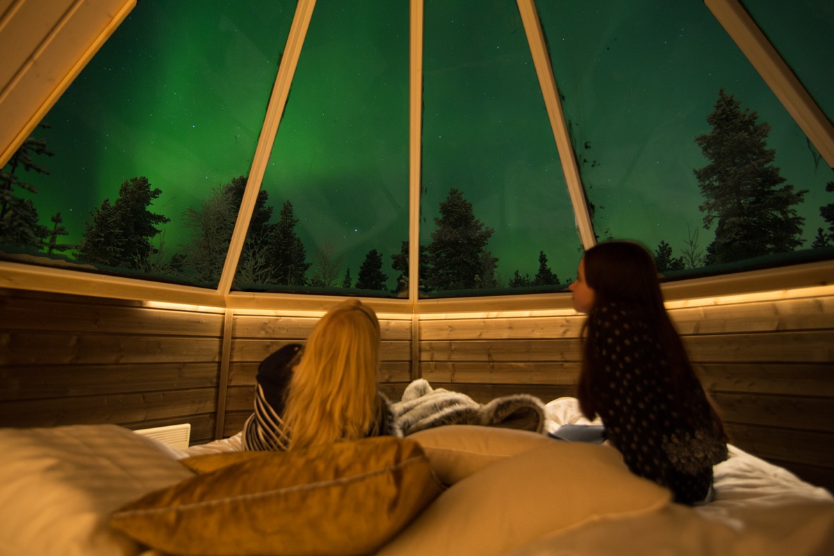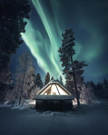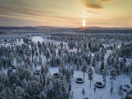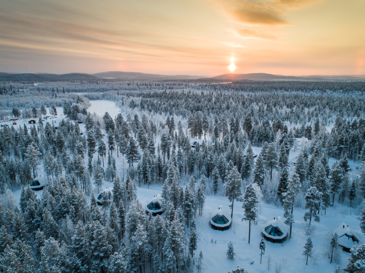 Weit im Norden Lapplands ca. 300 km über dem Polarkreis und inmitten der optimalen Nordlichtzone befinden sich diese traumhaften Glasdachhütten.