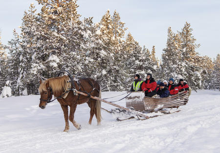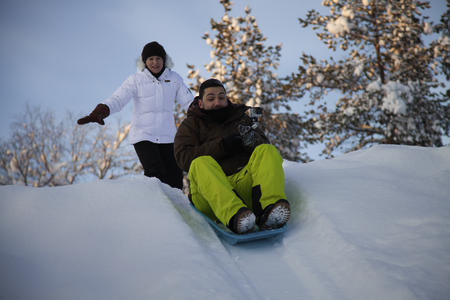 Heute wird es auf andere Art rasanter: Es wartet eine ca. 2-stündige Huskysafari auf Sie! Es ist einfach faszinierend, mit welchem Elan und Freude die Hunde mit Ihnen durch die Winterlandschaft düsen.