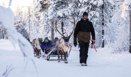 Mehrere hundert Kilometer nördlich des Polarkreises erwartet Sie Ivalo – und eine außergewöhnliche Unterkunft, wie man sie nur in Lappland findet. Sie wohnen in komfortablen Blockhütten mit beheiztem Glasdach, die rund um ein privates Rentiergehege angeordnet sind. So können Sie die sanften Tiere aus nächster Nähe beobachten – ein wahrhaft magischer Anblick.
