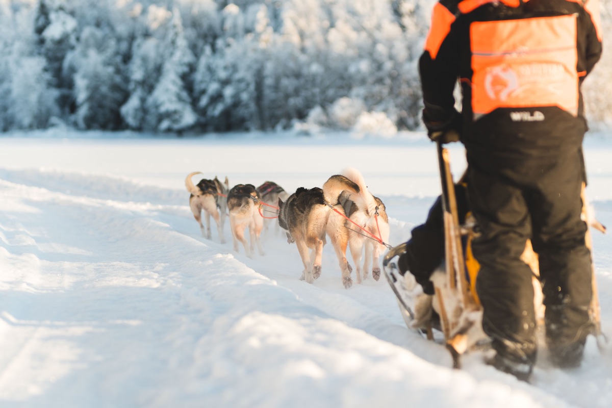 Am Nachmittag schlendern Sie zum nahegelegenen Husky-Park und lassen Sie sich von einem Musher und seinem Huskygespann auf einer rund 2 Kilometer langen Fahrt durch die verschneite Winterlandschaft fahren. Spüren Sie den Fahrtwind im Gesicht und die Kraft der Hunde, während Sie durch die stille Schneewelt gleiten.