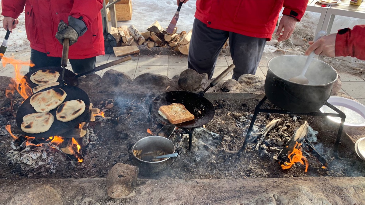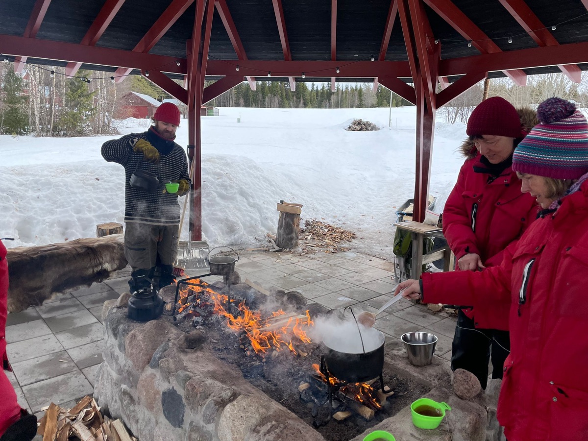In gemütlicher Runde bereiten Sie heute, unter Anleitung, gemeinsam Ihr Frühstück über dem offenen Feuer zu. Ganz ohne Stress und Hektik machen Sie sich danach mit den Schneeschuhen auf den Weg durch die unberührte Natur Schwedisch-Lapplands. Ihr Guide berichtet während der Tour über Flora und Fauna und beantwortet gern Ihre Fragen. Bei einer Pause genießen Sie ein schmackhaftes, warmes Sandwich, bevor Sie sich auf den Rückweg zur Farm begeben. Entspannen Sie nach der Tour in der Sauna und im HotPot. In der Grillhütte am See wird am Abend ein Lachs auf dem offenen Feuer zubereitet und serviert.