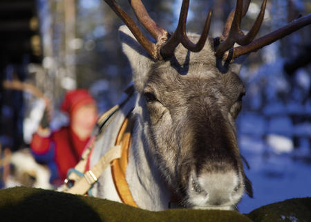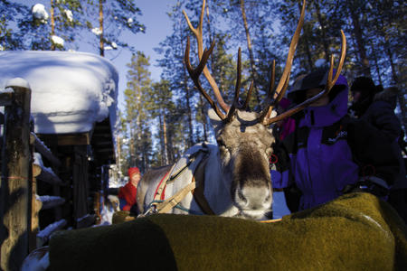 Am Nachmittag besuchen wir eine liebevoll geführte Rentierfarm, auf der eine einheimische Rentierzüchterin ihre Tiere mit viel Hingabe versorgt. Die Rundfahrt im Rentierschlitten (ca. 2 km) durch verschneite Wälder und über einen zugefrorenen See ist still, gemächlich und sehr atmosphärisch.