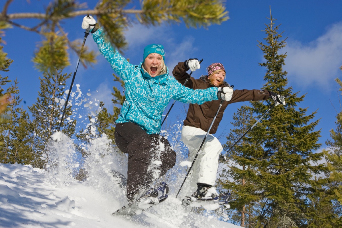 Wenn es Abend wird in Levi können Sie sich optional mit Schneeschuhen auf Nordlichtsuche begeben!