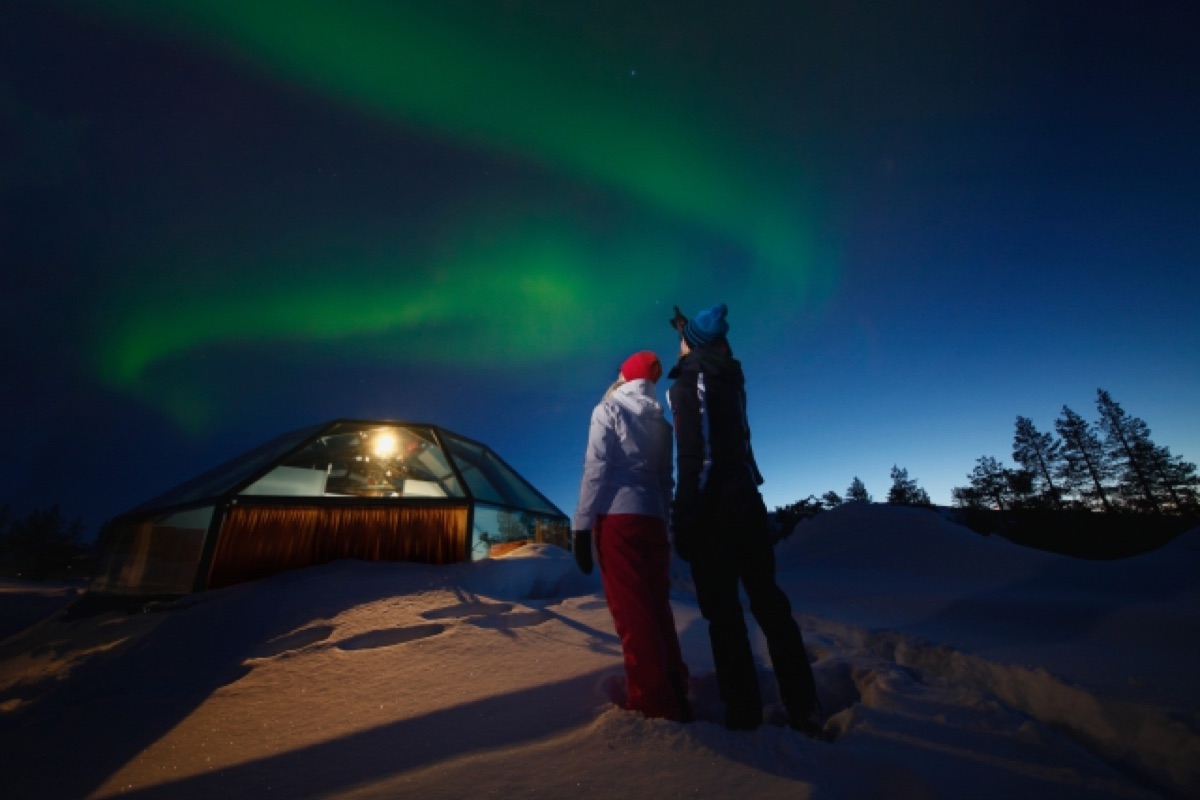 Am letzten Tag geht es zum Höhepunkt dieser Reise - hoch über den Abfahrtshängen des Berges Levi wurden die imposanten Glasiglus mit einem atemberaubenden Ausblick auf die umliegende Fjälllandschaft erbaut. Der Clou: Im Zentrum des 26 m² großen Iglus steht ein Doppelbett, das sich auf Wunsch elektronisch manövrieren lässt. Das heißt, Sie folgen dem Himmelszelt ganz wie es Ihnen gefällt. Und mit etwas Glück erhellen die Nordlichter die Nacht.