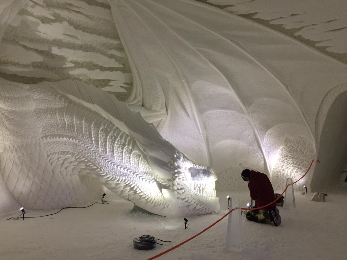Für die Errichtung des Schneehotels werden jedes Jahr ca. 1,5 Mio. Kilo Schnee und ca. 300.000 Kilo kristallklares, natürliches Eis verbaut. Das Snow Village besteht aus verschiedenen Zimmern aus Schnee, einem Eisrestaurant und einer Cocktailbar aus Eis. Es ist beeindruckend, was hier Jahr für Jahr geschaffen wird.