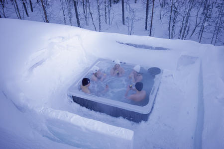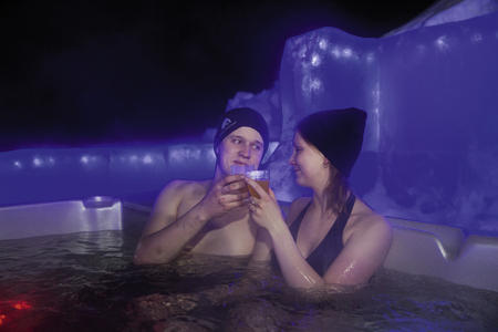 Wer sich vor dem Schlafen gehen noch einmal ordentlich aufwärmen möchte, dem empfehlen wir einen Besuch im Saunabereich mit klassisch finnischer und außergewähnlicher Eissauna sowie Whirlpool (privat).