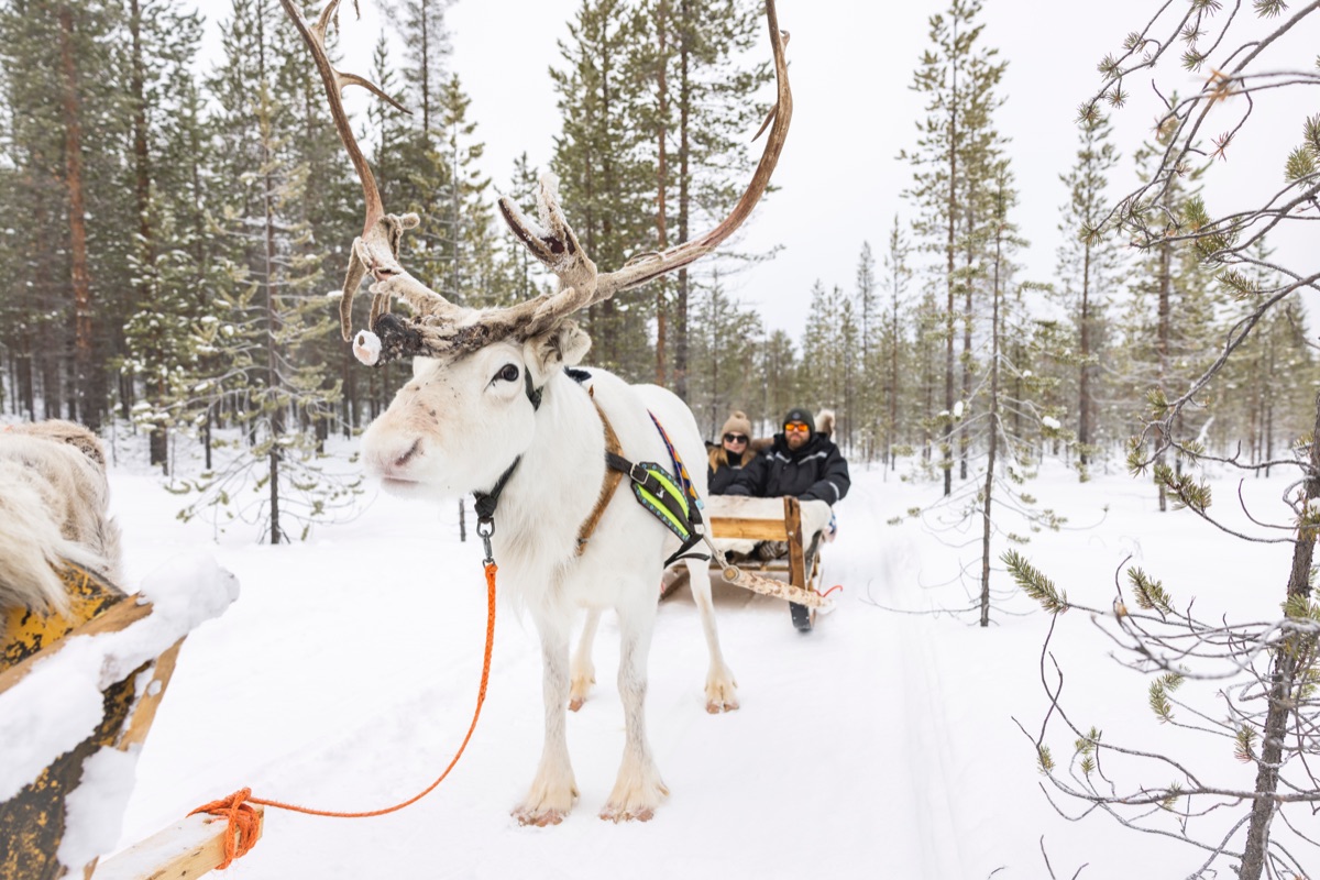 Nach einem ca. 20-minütigen Transfer erreichen Sie das Safarizentrum und die Rentierfarm des Hotels. Hier treffen Sie einen einheimischen Rentierzüchter, der Ihnen Geschichten über die Rentierzucht und die samische Kultur erzählt. Sie haben die Gelegenheit die Rentiere zu füttern und zu fotografieren. Dann dürfen Sie es sich in einem Schlitten bequem machen und Sie genießen eine magische Schlittenfahrt durch den verschneiten Kiefernwald. Die Schlitten bieten Platz für max. 2 Erwachsene und 1 Kind.