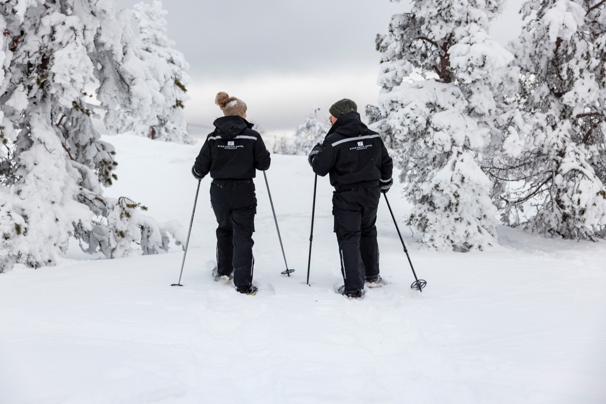 Nach dem Frühstück startet die Schneeschuhwanderung direkt vom Hotel. Hier treffen Sie Ihren Guide und erhalten die Schneeschuhe. Die Schuhe sind schnell angeschnallt und Ihr Guide erklärt Ihnen die Nutzung, welche erstaunlich einfach und auch für Anfänger leicht zu erlernen ist. Gemeinsam machen Sie sich entspannt auf den Weg in die Wildnis. Mit den Schneeschuhen kommen Sie ganz leicht auch durch tiefen Schnee ohne einzusinken und erleben die Ruhe und Schönheit der tief verschneiten Umgebung. Bei einer Pause genießen Sie ein warmes Getränk.