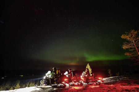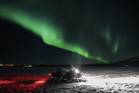 Ausgestattet mit Safarikleidung führt Sie Ihr Guide mit Elektro-Motorschlitten zu offenen Flächen fernab von Lichtverschmutzung. Sie haben viel Zeit, den Himmel zu beobachten. Mit etwas Glück zeigt sich das sagenumwobene Farbschauspiel am Himmel!