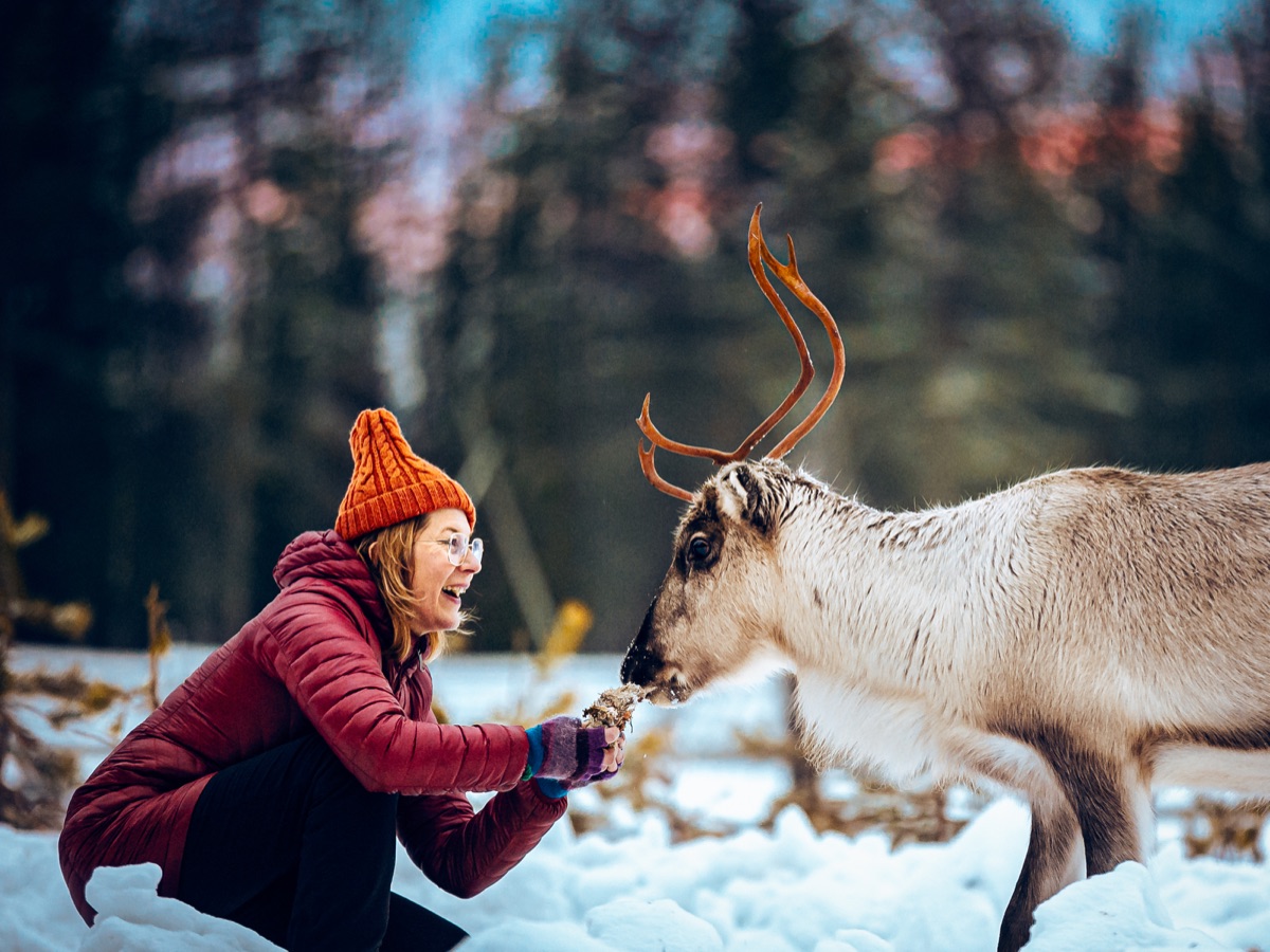 Beim heutigen Besuch der Rentierfarm genießen Sie eine ruhige und friedliche halbstündige Fahrt im Rentierschlitten, eine Führung über die Rentierfarm, erfahren mehr über die Traditionen und Lebensweise der Hirten und genießen einen Rentiersuppen-Lunch. Außerdem haben Sie die Gelegenheit, die Tiere zu füttern bevor es für Sie zurück zum Resort geht.