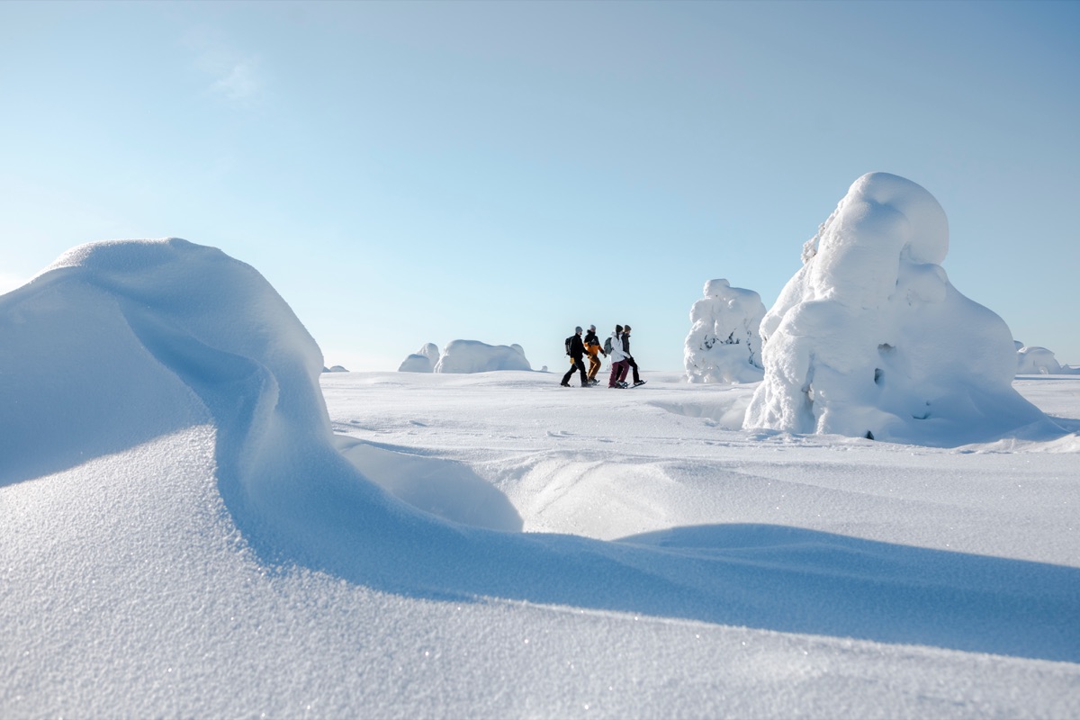 Wer mag kann an einer geführten E-Motorschlittensafari in die Natur teilnehmen, bestens für Einsteiger geeignet. Alternativ können Sie das liebste Hobby der Finnen ausprobieren und einen geführten Ausflug zum Eisangeln unternehmen.