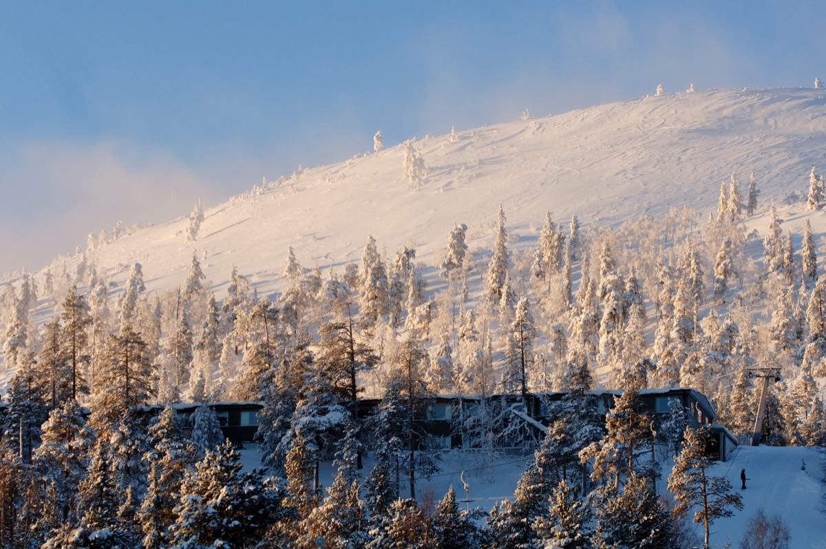 Lage: Auf halber Höhe des Pyhä Fjälls direkt an den Skipisten gelegen. Die Gesamthöhe des Fjälls beträgt ca. 500m. 155 km vom Flughafen Kittilä, 90 Minuten Fahrt vom Flughafen Rovaniemi entfernt. Der nächstgelegene Bahnhof ist ebenfalls Rovaniemi, hier endet auch der Autoreisezug.