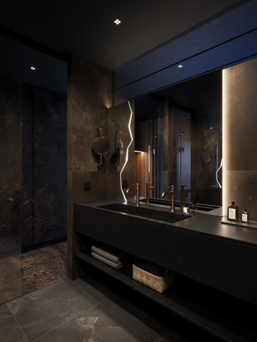 Premium Suite (43m²) mit Badewanne und privater Sauna Etwas mehr Platz und ein separates Schlafzimmer bieten die Premium Suiten, ebenfalls im Hotelgebäude. Sie verfügen über eine eigene Sauna sowie eine Badewanne mit Panoramablick. Der gemütliche Wohnbereich mit bodentiefen Fenstern öffnet sich direkt zur Winterlandschaft.