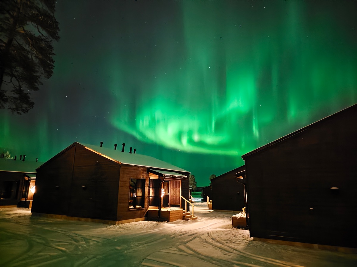 Aktivitäten: Große Auswahl an geführten winterlichen Aktivitäten, wie Motorschlittentouren, Eisfischen auf dem See Inari, Husky- und Rentiertouren, Ski-Langlauf und Schneeschuhwanderungen, Sami Kultur mit lappländischem Abendessen und natürlich viele Angebote zur Nordlichtsuche und -beobachtung.