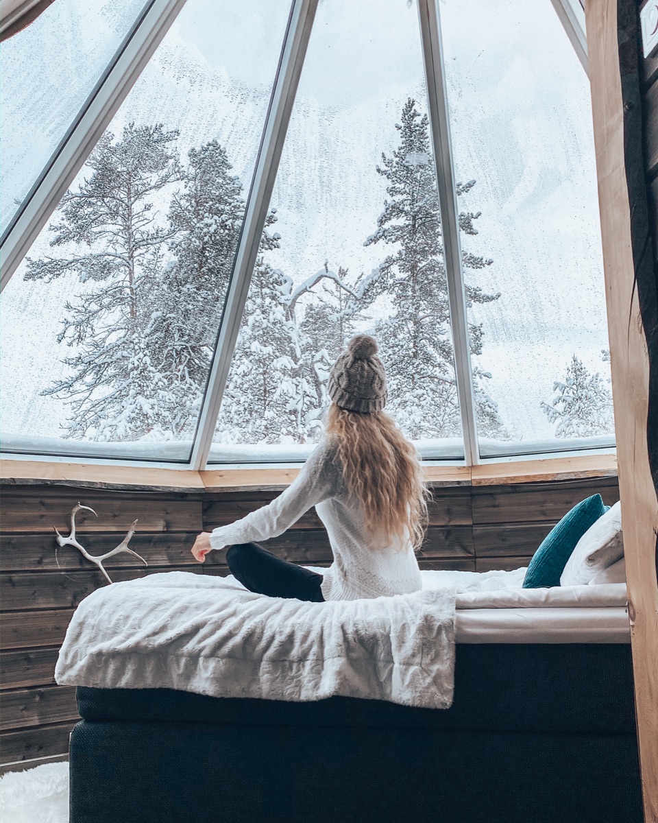Die Aurora Kotas mit Glasdach über dem Bett sind ca. 34 qm groß und sind ausgestattet mit Twin Betten, einem Sofa, Badezimmer mit Dusche/WC und Wasserkocher. Hier ist auch eine Möglichkeit für extra Betten gegeben, sodass bis zu 4 Personen Platz finden. (WIFI nur im Hauptgebäude)