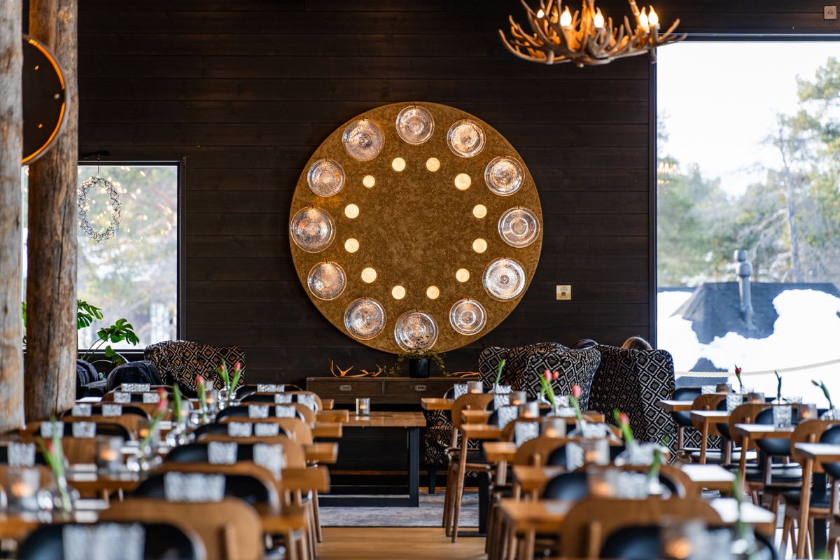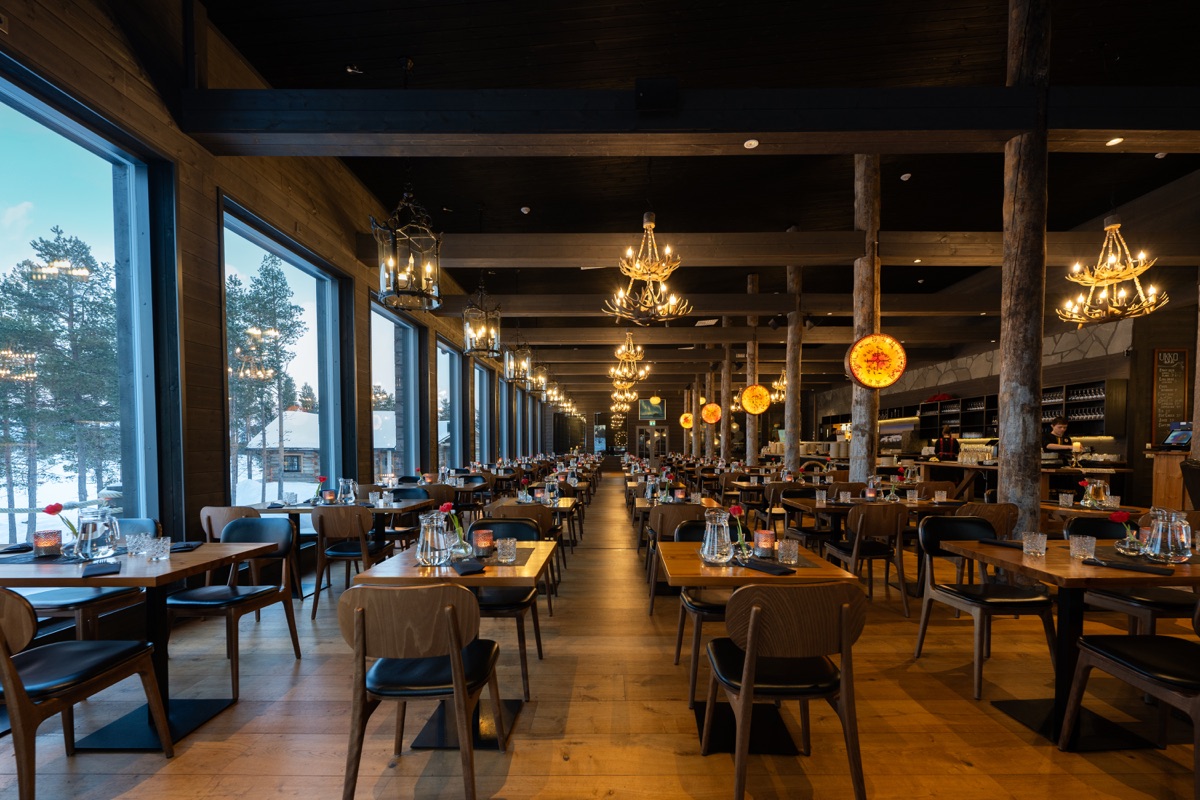 Einrichtungen: Rezeption und Loungebereich mit Bar und Kamin im Hauptgebäude, Restaurant mit großer Fensterfront in Richtung See und Platz für bis zu 200 Personen, geöffnet von 8-20 Uhr, Mahlzeiten in Buffetform, Hotelsauna in einem Glasiglu (ggf. mit vorheriger Reservierung). Sauna, buchbar vor Ort ggf. gegen Gebühr.