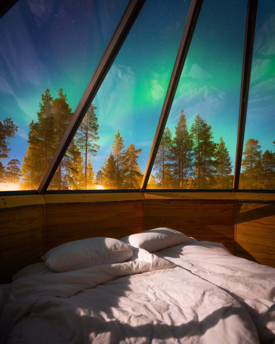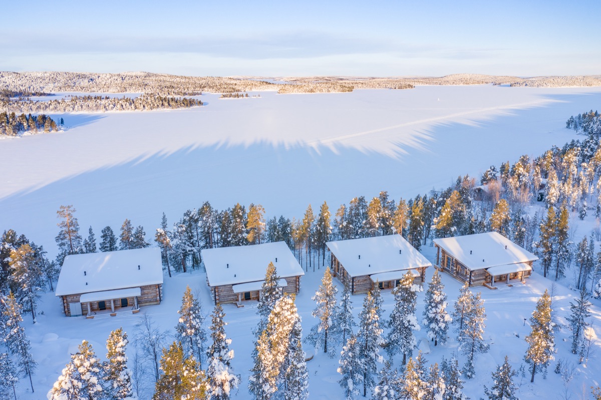 Die Nordlicht Kotas für 2 Personen sind eine romantische Unterkunft aus Holzbohlen mit Glasdach über dem Doppelbett, Kamin, Badezimmer mit Dusche und WC. Einrichtungen: Gemütliches Restaurant mit großer Fensterfront und bequemen Sitzecken am Kamin. Sauna, buchbar vor Ort ggf. gegen Gebühr. Lage: Direkt am Inari-See gelegen. Der nächstgelegene Flughafen Ivalo ist ca. 22 km entfernt.