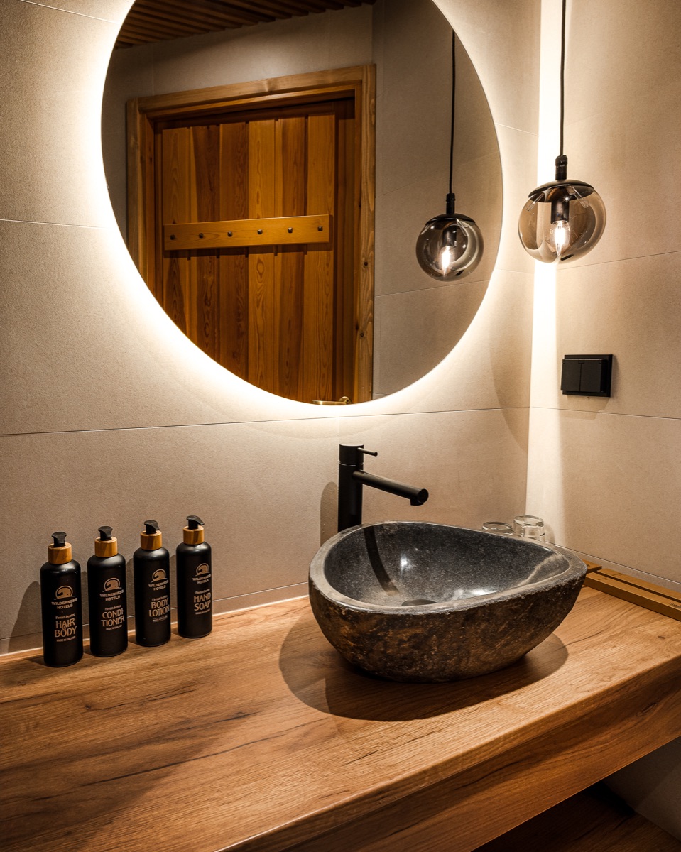 Für noch mehr Raum und Behaglichkeit sorgen die Superior Doppelzimmer, die den typischen Wildnisstil des Hauses widerspiegeln. Hier laden ein großzügiges Doppelbett und ein ausziehbares Sofa zum Entspannen ein. Der Duft von Holz, sanftes Licht und durchdachte Details schaffen eine Atmosphäre, in der man sich vom ersten Moment an willkommen fühlt.