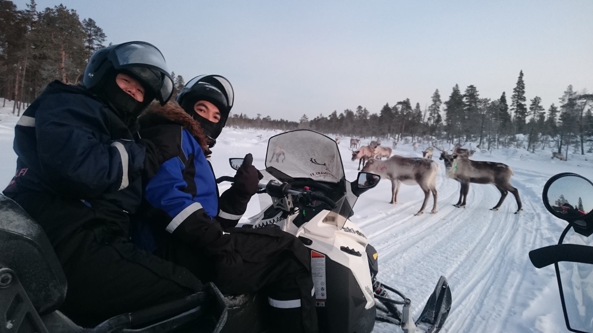 Heute haben Sie optional die Möglichkeit dazu! In Schlitten von Schneemobilen gezogen, fahren Sie in den nahe gelegenen Wald und halten nach den Rentieren Ausschau. Sie sind nicht eingezäunt und laufen frei herum. Die Tiere kommen allerdings regelmäßig zu "ihrem" Hirten und Futterstellen zurück. Sie können ihm also beim Füttern der Rentiere behilflich sein und erfahren anschließend in gemütlicher Runde bei einer Tasse warmen Tee oder Kaffee sowie Kuchen noch mehr über sein Leben mit ihnen.